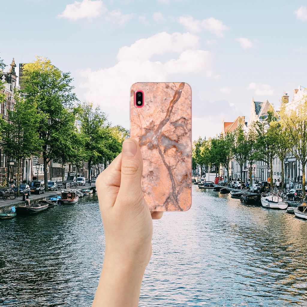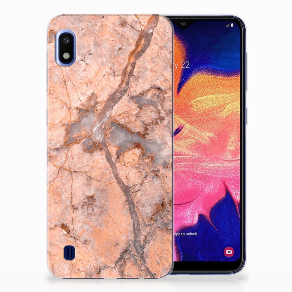 Dit design hoesje met Marmer Oranje is zeer geschikt voor jouw kostbare telefoon. Vanwege zijn prachtige lichtval en vastheid is marmer een zeer gewild bouwmateriaal. Wij kunnen inmiddels concluderen dat dit hoesje met oranje marmer ook zeer gewild is. Beloon jezelf en je telefoon met dit hele mooie Samsung Galaxy A10 TPU Siliconen Hoesje. Naast het oranje marmer zijn er de diverse marmersoorten in een ruim kleurenpallet te krijgen. Deze tpu case met marmer in oranje wordt aan de achterzijde bedrukt. De case beschikt over opstaande randen en is gemaakt van onbreekbaar materiaal. De randen van de case in oranje marmer blijven transparant. Wij hebben onze designer veel vrijheid gegeven met het ontwerpen dit mooie hoesje. Het resultaat zie je terug in deze tpu case met oranje marmer, dat een hele goede bescherming is voor jouw smartphone. Des te mooi dat wij voor variatie hebben gekozen door een hoesje met oranje marmer aan de bieden.