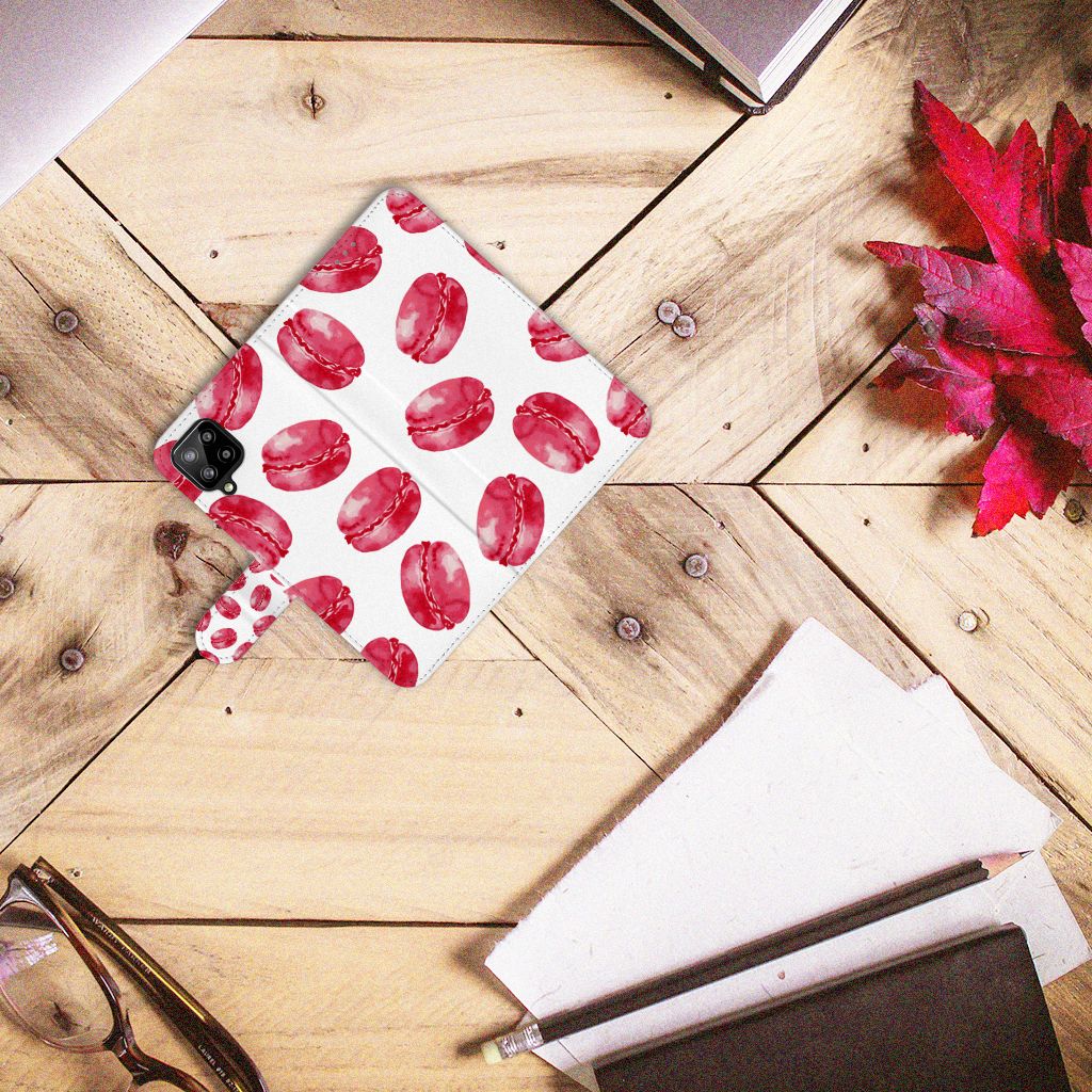 Dit hoesje met Pink Macarons is een zeer opvallende bescherming voor jouw smartphone. Macarons zijn Franse koekjes: kleine, rond en luchtig. Ze worden in veel verschillende smaken gemaakt, herkenbaar aan de verschillende kleuren zoals chocolade (donkerbruin), mokka (middenbruin), kersen (rood), pistache (groen), aardbei (roze), framboos (karmijn). Deze kleuren kun je niet allemaal zien op dit fraaie design hoesje met roze macarons. Heb je altijd al een Samsung Galaxy A12 Book Cover willen hebben met roze macarons? Grijp dan nu je kans. Een boekhoesje heeft zeer veel goede eigenschappen, zoals opbergvakjes aan de binnenkant en een magnetische sluiting in de vorm van een lipje aan de buitenzijde. Dit design hoesje met roze macarons wordt aan alle zijden bedrukt, zelfs het lipje krijgt een afbeelding van een roze macaron. De houder aan de binnenkant van het hoesje is van TPU.