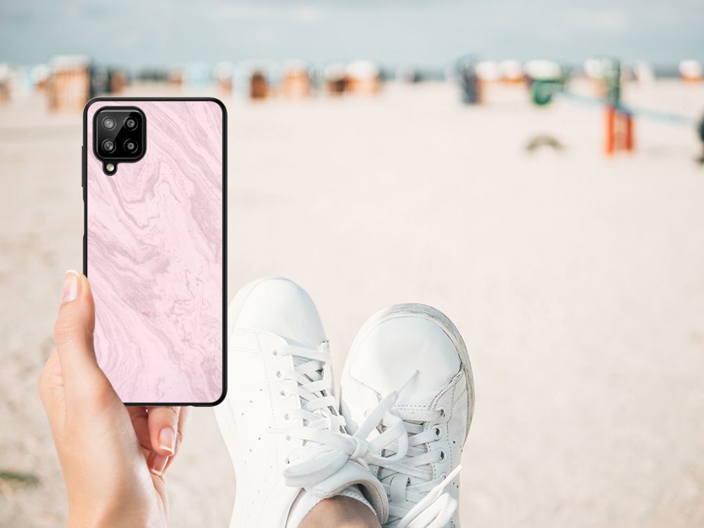 Samsung Galaxy A12 TPU Siliconen Hoesje Marble Pink - Origineel Cadeau Vriendin