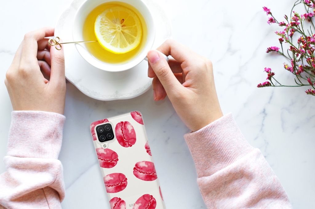 Dit tpu hoesje met Pink Macarons is een zeer opvallende bescherming voor jouw smartphone. Macarons zijn Franse koekjes: kleine, rond en luchtig. Ze worden in veel verschillende smaken gemaakt, herkenbaar aan de verschillende kleuren zoals chocolade (donkerbruin), mokka (middenbruin), kersen (rood), pistache (groen), aardbei (roze), framboos (karmijn). Deze kleuren kun je niet allemaal zien op dit fraaie design hoesje met roze macarons. Heb je altijd al een Samsung Galaxy A12 Siliconen Case willen hebben met roze macarons? Grijp dan nu je kans. Deze case heeft zeer veel goede eigenschappen, zoals elastisch vermogen, flexibiliteit en schokbestendigheid. Dit design hoesje met roze macarons wordt aan de bovenkant bedrukt, de zijkanten blijven doorzichtig. De case heeft opstaande randen aan de voorzijde en beschermt samen met een screenprotector jouw telefoon perfect. De case heeft ook een handige standaard.