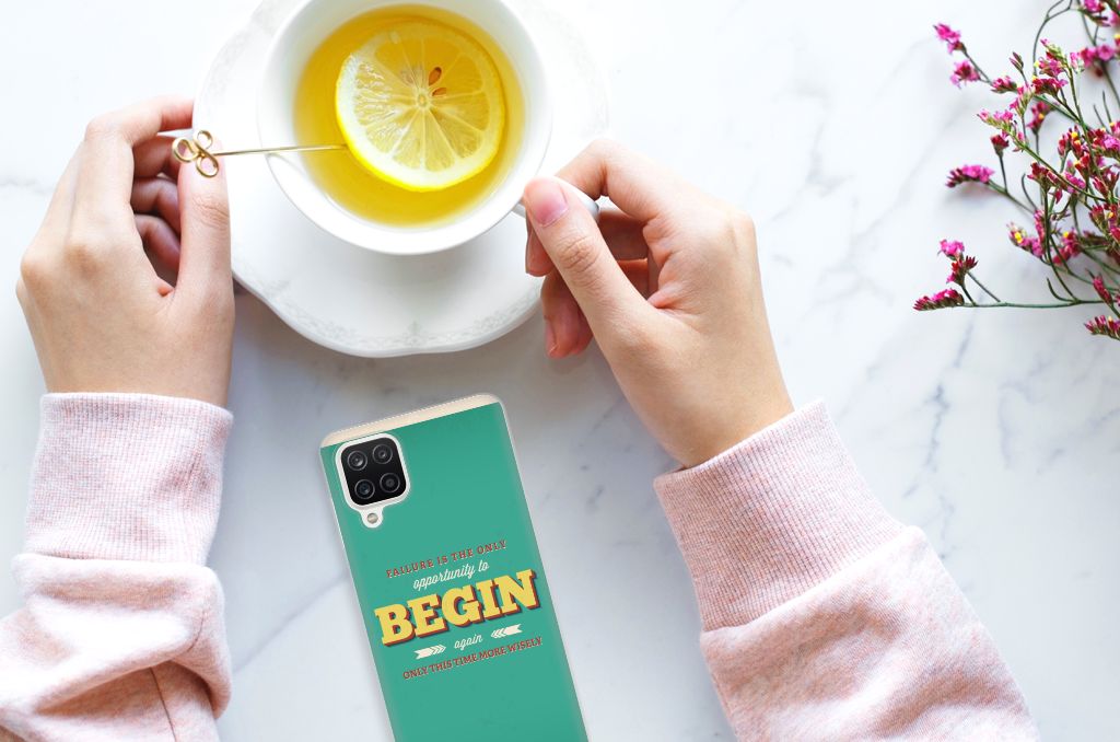 Ben je op zoek naar een uniek telefoonhoesje voor je Samsung Galaxy A12? Dan ben je bij B2C Telecom aan het juiste adres! Speciaal voor jou hebben we dit prachtige Quote Begin design in onze collectie hoesjes opgenomen. Het design wordt bedrukt op een Siliconen hoesje met naam en is gemaakt van flexibel rubber. Het design wordt alleen aan de bovenkant van het hoesje bedrukt en de randen blijven transparant. Aan de zijkanten zijn uitsparingen gemaakt waardoor je met gemak alle knoppen en poorten kunt bedienen. Wij adviseren om dit hoesje in combinatie met een screenprotector te gebruiken voor een langere levensduur van je telefoon. Wil je dit design hoesje nog iets extra's geven? Voeg dan gratis je naam of een quote toe! Is dit design hoesje toch niet helemaal wat je zocht? Ontwerp dan zelf een hoesje in ons ontwerpprogramma.
