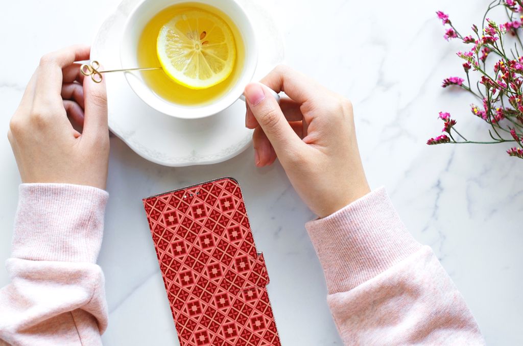 Batikken is een super oude kunstvorm. Met deze methode wordt een geweven stof met verf gedecoreerd. Er zijn stoffen gevonden in het Midden-Oosten en Azië van meer dan tweeduizend jaar oud. Wie had kunnen bedenken dat we zo’n mooie batik-print duizenden jaren later zelfs op telefoonhoesjes zouden terugvinden? Dit Telefoon Hoesje in voor je Samsung Galaxy A12 heeft een mooie rode kleur en een prachtig symmetrisch patroon. Dankzij de pasjeshouder in het boekhoesje, heb je altijd je belangrijkste bezittingen bij je. Super handig en ook nog eens erg mooi. En bovenal is je telefoon meteen goed beschermd tegen krassen en beschadigingen. Dit Batik red-hoesje heeft een lipje aan de buitenkant en een houder gemaakt van TPU.