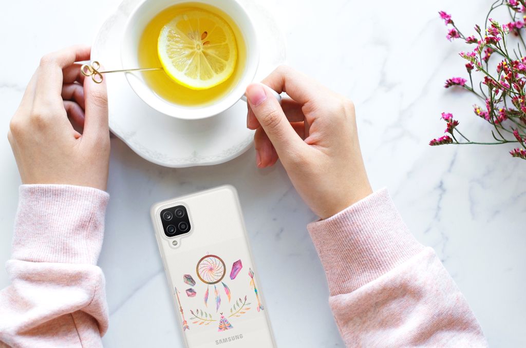 Een dromenvanger werd lang geleden al door een indianenvolk in Noord-Amerika gebruikt om nare dromen te weren. Nu nog hangen mensen over de hele wereld dromenvangers boven hun bed. Maar ook op een telefoonhoesje staat zo’n boho dreamcatcher heel mooi. Dit mooie design dat bestaat uit een tipi, pijlen en dromenvanger heeft veel verschillende prachtige kleuren. Maar omdat het ontwerp minimalistisch en klein is, is het design toch subtiel te noemen. Dit ontwerp staat op een Telefoonhoesje met Naam voor je Samsung Galaxy A12. TPU is flexibel en heel erg sterk. Zo is je telefoon aan de achterkant en de randen heel goed beschermd. De case is aan de bovenkant bedrukt, de randen blijven transparant. Het TPU-hoesje is perfect te combineren met een screenprotector, zo zijn je telefoon en je beeldscherm altijd goed beschermd.