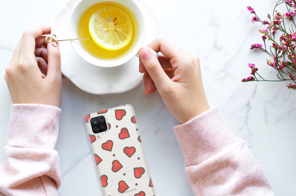 Met deze Samsung Galaxy A12 TPU bumper met hartjes op een grijs met witte achtergrond maak jij een goede beurt als je dit cadeau geeft aan je vriend of vriendin. Bekroon je liefde voor elkaar met deze hele mooie tpu case, die jouw telefoon met name aan de achterkant en zijkanten goed beschermt. Dit is echt een prachtige manier om je telefoon te beschermen. Het tpu hoesje met design met Hearts is ook nog eens zeer praktisch, mede door het buigzame materiaal en de uitsparingen. Als je telefoon met het TPU hoesje uit je hand valt, stuitert het als het ware meteen weer terug in je hand en zal het scherm in tact blijven. De case heeft namelijk opstaande randen aan de voorkant. Alleen de bovenkant van de case wordt bedrukt met hartjes, de zijkanten zijn doorzichtig. Voor een habbekrats is dit hoesje met hartjes op een grijs met witte achtergrond te bestellen.