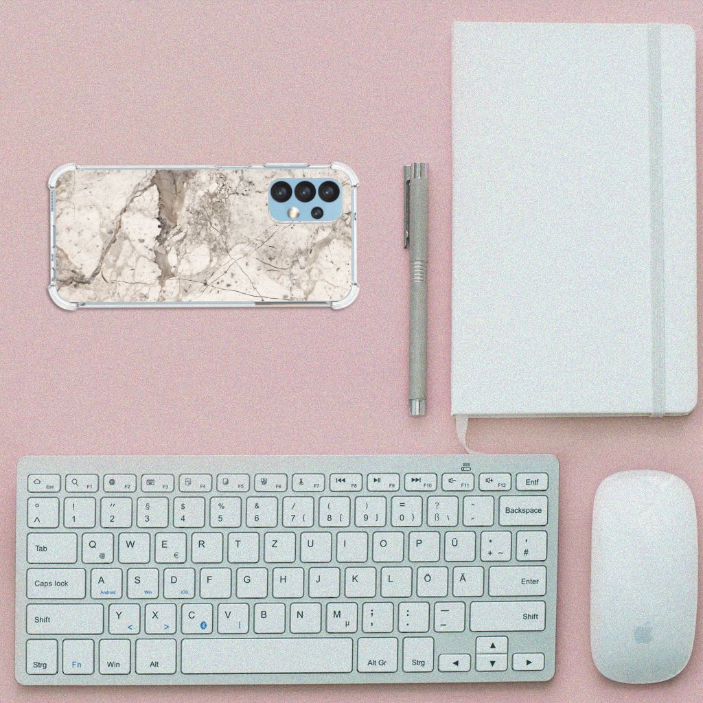 Ben je op zoek naar een uniek telefoonhoesje voor je Samsung Galaxy A13 (4G)? Dan ben je bij B2C Telecom aan het juiste adres! Speciaal voor jou hebben we dit prachtige Marmer Beige design in onze collectie hoesjes opgenomen. Het design wordt bedrukt op een Anti-Shock Hoesje en is gemaakt van flexibel rubber. Het hoesje is perfect voor de actieve smartphonegebruiker door de opstaande randen/hoeken. Denk aan mensen die veel sporten, reizen of wandelen en net iets meer zekerheid willen als het op hun geliefde telefoon aankomt. Het design wordt alleen aan de bovenkant van het hoesje bedrukt en de randen blijven transparant. Aan de zijkanten zijn uitsparingen gemaakt waardoor je met gemak alle knoppen en poorten kunt bedienen. Wij adviseren om dit hoesje in combinatie met een screenprotector te gebruiken voor een langere levensduur van je telefoon. Wil je dit hoesje nog iets extra's geven? Voeg dan gratis je naam of een quote toe! Is dit design hoesje toch niet helemaal wat je zocht? Ontwerp dan zelf een hoesje in ons ontwerpprogramma.