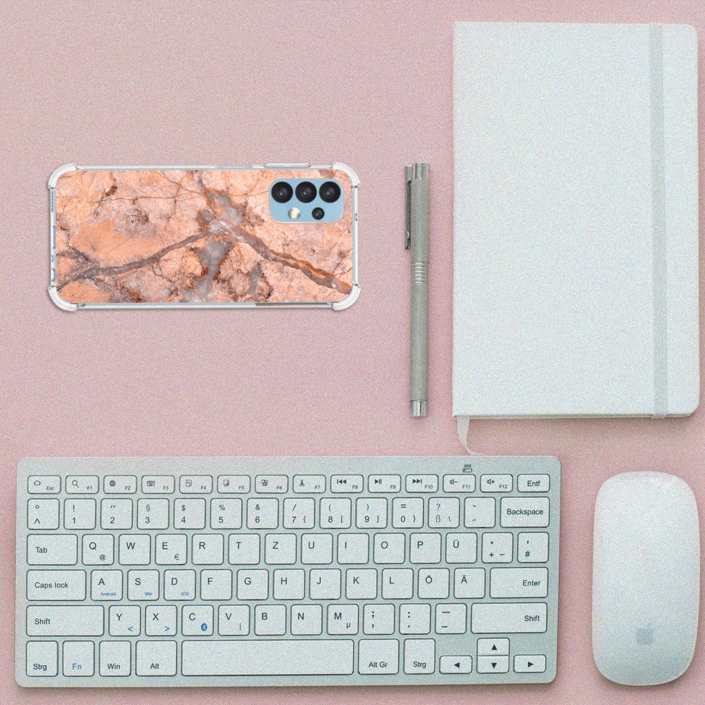 Ben je op zoek naar een uniek telefoonhoesje voor je Samsung Galaxy A13 (4G)? Dan ben je bij B2C Telecom aan het juiste adres! Speciaal voor jou hebben we dit prachtige Marmer Oranje design in onze collectie hoesjes opgenomen. Het design wordt bedrukt op een Anti-Shock Hoesje en is gemaakt van flexibel rubber. Het hoesje is perfect voor de actieve smartphonegebruiker door de opstaande randen/hoeken. Denk aan mensen die veel sporten, reizen of wandelen en net iets meer zekerheid willen als het op hun geliefde telefoon aankomt. Het design wordt alleen aan de bovenkant van het hoesje bedrukt en de randen blijven transparant. Aan de zijkanten zijn uitsparingen gemaakt waardoor je met gemak alle knoppen en poorten kunt bedienen. Wij adviseren om dit hoesje in combinatie met een screenprotector te gebruiken voor een langere levensduur van je telefoon. Wil je dit hoesje nog iets extra's geven? Voeg dan gratis je naam of een quote toe! Is dit design hoesje toch niet helemaal wat je zocht? Ontwerp dan zelf een hoesje in ons ontwerpprogramma.