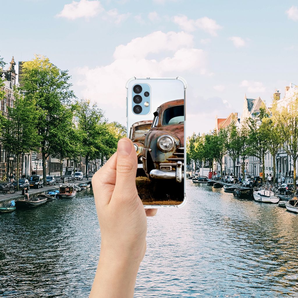 Ben je op zoek naar een uniek telefoonhoesje voor je Samsung Galaxy A13 (4G)? Dan ben je bij B2C Telecom aan het juiste adres! Speciaal voor jou hebben we dit prachtige Vintage Auto design in onze collectie hoesjes opgenomen. Het design wordt bedrukt op een Anti-shock Hoesje met foto en is gemaakt van flexibel rubber. Het hoesje is perfect voor de actieve smartphonegebruiker door de opstaande randen/hoeken. Denk aan mensen die veel sporten, reizen of wandelen en net iets meer zekerheid willen als het op hun geliefde telefoon aankomt. Het design wordt alleen aan de bovenkant van het hoesje bedrukt en de randen blijven transparant. Aan de zijkanten zijn uitsparingen gemaakt waardoor je met gemak alle knoppen en poorten kunt bedienen. Wij adviseren om dit hoesje in combinatie met een screenprotector te gebruiken voor een langere levensduur van je telefoon. Wil je dit hoesje nog iets extra's geven? Voeg dan gratis je naam of een quote toe! Is dit design hoesje toch niet helemaal wat je zocht? Ontwerp dan zelf een hoesje in ons ontwerpprogramma.