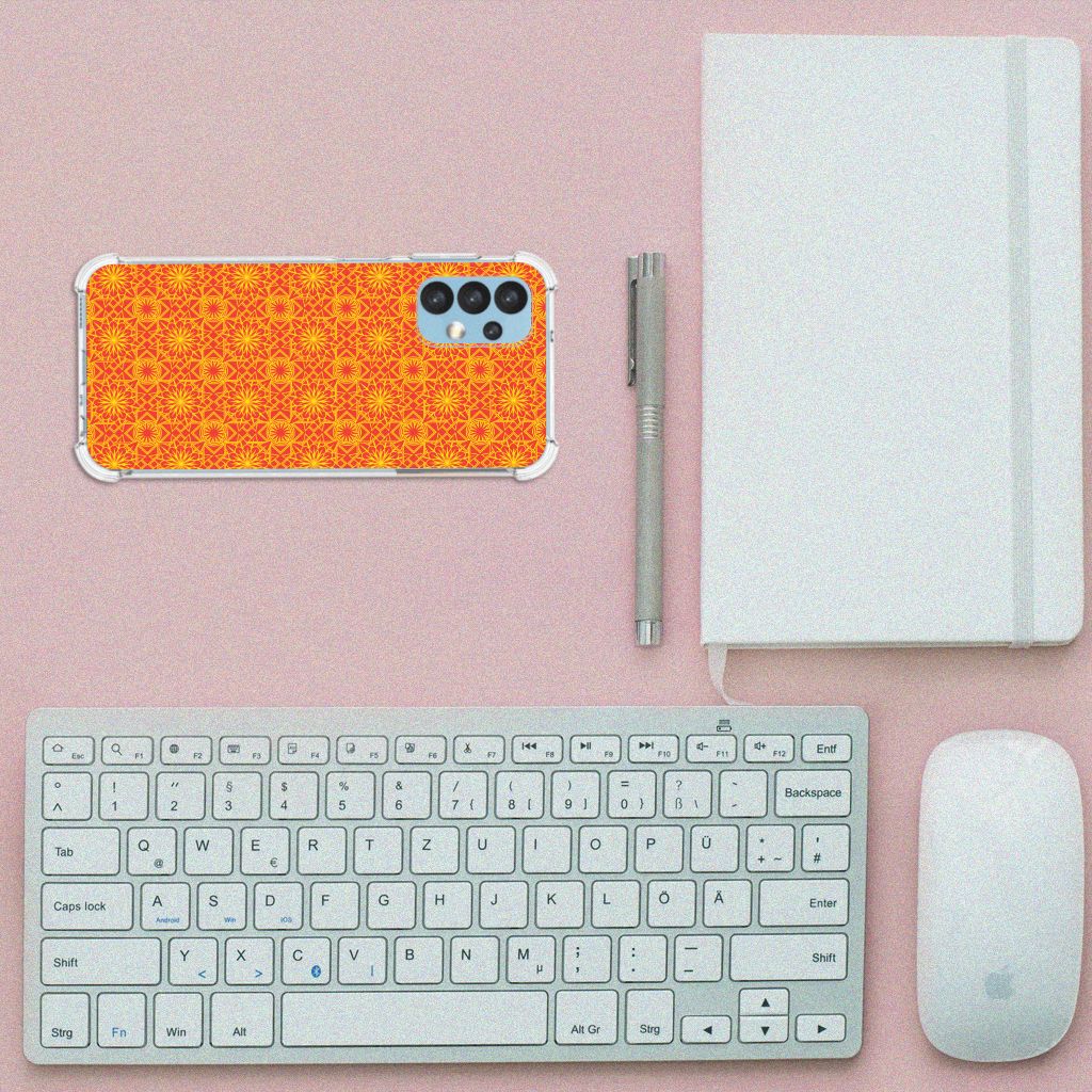 Ben je op zoek naar een uniek telefoonhoesje voor je Samsung Galaxy A13 (4G)? Dan ben je bij B2C Telecom aan het juiste adres! Speciaal voor jou hebben we dit prachtige Batik Orange design in onze collectie hoesjes opgenomen. Het design wordt bedrukt op een Doorzichtige Silicone Hoesje en is gemaakt van flexibel rubber. Het hoesje is perfect voor de actieve smartphonegebruiker door de opstaande randen/hoeken. Denk aan mensen die veel sporten, reizen of wandelen en net iets meer zekerheid willen als het op hun geliefde telefoon aankomt. Het design wordt alleen aan de bovenkant van het hoesje bedrukt en de randen blijven transparant. Aan de zijkanten zijn uitsparingen gemaakt waardoor je met gemak alle knoppen en poorten kunt bedienen. Wij adviseren om dit hoesje in combinatie met een screenprotector te gebruiken voor een langere levensduur van je telefoon. Wil je dit hoesje nog iets extra's geven? Voeg dan gratis je naam of een quote toe! Is dit design hoesje toch niet helemaal wat je zocht? Ontwerp dan zelf een hoesje in ons ontwerpprogramma.