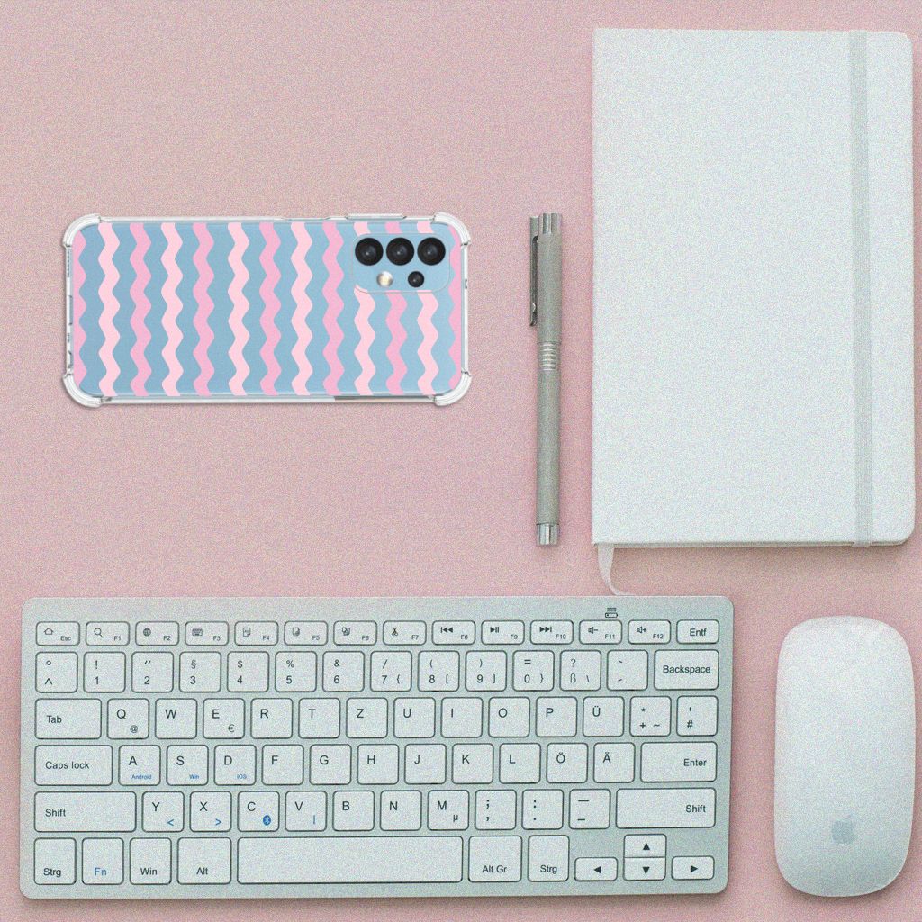 Ben je op zoek naar een uniek telefoonhoesje voor je Samsung Galaxy A13 (4G)? Dan ben je bij B2C Telecom aan het juiste adres! Speciaal voor jou hebben we dit prachtige Waves Roze design in onze collectie hoesjes opgenomen. Het design wordt bedrukt op een Doorzichtige Silicone Hoesje en is gemaakt van flexibel rubber. Het hoesje is perfect voor de actieve smartphonegebruiker door de opstaande randen/hoeken. Denk aan mensen die veel sporten, reizen of wandelen en net iets meer zekerheid willen als het op hun geliefde telefoon aankomt. Het design wordt alleen aan de bovenkant van het hoesje bedrukt en de randen blijven transparant. Aan de zijkanten zijn uitsparingen gemaakt waardoor je met gemak alle knoppen en poorten kunt bedienen. Wij adviseren om dit hoesje in combinatie met een screenprotector te gebruiken voor een langere levensduur van je telefoon. Wil je dit hoesje nog iets extra's geven? Voeg dan gratis je naam of een quote toe! Is dit design hoesje toch niet helemaal wat je zocht? Ontwerp dan zelf een hoesje in ons ontwerpprogramma.