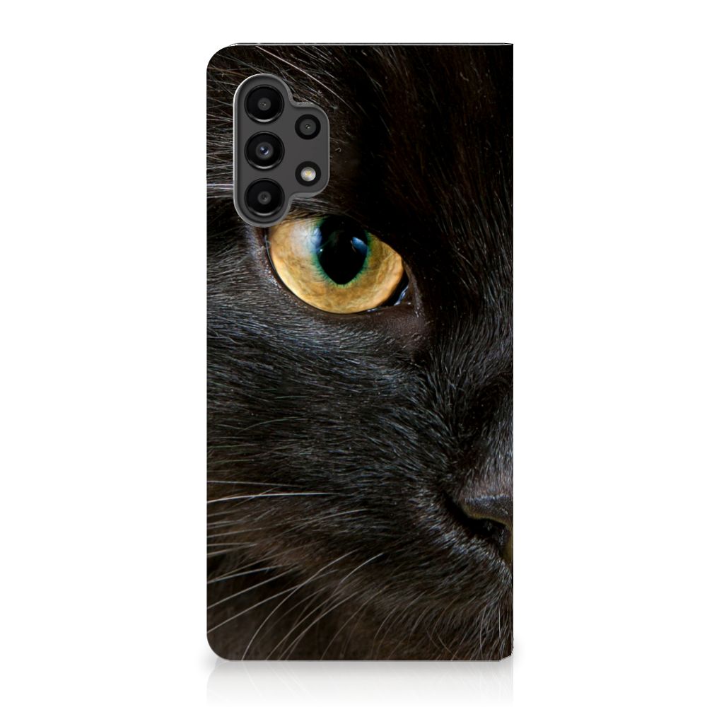 warte katten zijn heel speciaal, vandaar we een exemplaar op een design hoesje hebben gezet. Een zwarte kat schijnt bijvoorbeeld veel beter te kunnen horen dan witte katten. Deze zwarte kat staat op zeer prominente wijze op een stand case. Een Samsung Galaxy A13 (4G) Hoesje maken met zwarte kat beschermt jouw smartphone aan alle zijden en wordt ook volledig bedrukt. De stand case met zwarte kat ziet er geweldig uit en is voorzien van verschillende uitsparingen en een speciale standaard. Alle zijden van de case zijn bedrukt. Dit design hoesje is van TPU aan de binnenzijde en zeer flexibel. Verder heeft de case een houder voor een pasje.