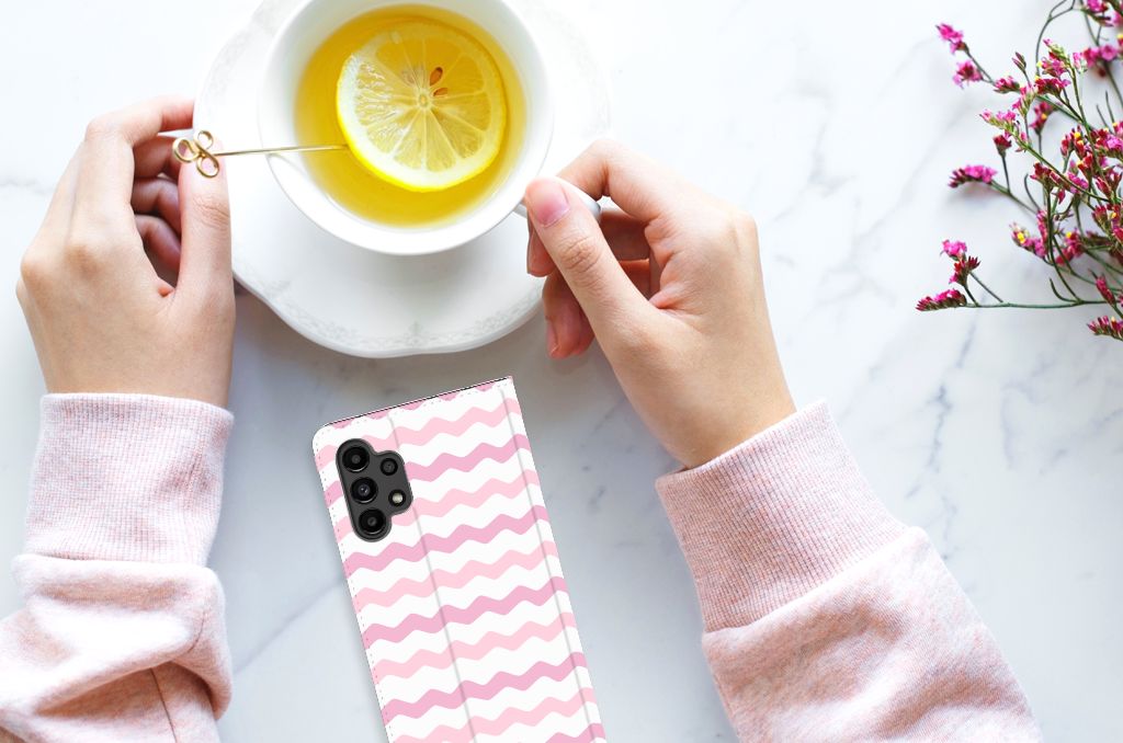 Dit design hoesje met Waves Roze afdruk is speciaal op maat gemaakt voor jouw telefoon. We hebben verschillende kleurstellingen gebruikt in het design, zodat de case er spannend en leuk uitziet. Dit licht roze hoesje met verschillende soorten golven ziet er opwindend uit. Het Samsung Galaxy A13 (4G) Hoesje met Magneet wordt in ons eigen magazijn bedrukt, vandaar dat we de kosten zeer laag kunnen houden. Wij kunnen het duurzame hoesje met licht roze golven zeer snel leveren. Heb jij altijd al een design hoesje met verschillende soorten licht roze willen hebben? De stand case met licht roze golven beschermt jouw telefoon aan alle kanten en beschikt over een 1 opbergvakje en een speciale standaard. Het licht roze hoesje wordt afgesloten met een magneet aan de binnenzijde. De houder aan de binnenzijde van de case in verschillende soorten licht roze is van het flexibele TPU. Alle zijden van de licht roze stand case worden bedrukt.