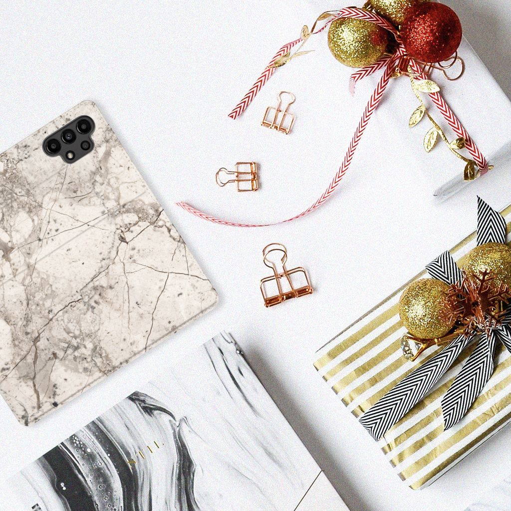 Dit design hoesje met Marmer Beige is voor de artistieke personen onder ons. De Grieken en Romeinen wisten het steen al te waarderen door het als bouw- en bekledingsmateriaal toe te passen. Naast het witte Carrara marmer met haar zacht grijze geaderde belijning zijn de diverse marmersoorten in een ruim kleurenpallet te krijgen. We hebben verschillende kleuren op design hoesjes gezet, zoals in dit geval beige marmer. Dit is een Samsung Galaxy A13 (4G) Standcase met marmer in beige kleur. Het marmer wordt bedrukt op alle zijden van een stand case, die beschikt over 1 vakje voor een pasje en toebehoren en een magnetische sluiting aan de binnenkant. Verder heeft de case een houder van TPU. De rijkheid aan kleuren en varianties in afwerking geeft designers de vrijheid om met marmer hele mooie architectonische projecten te realiseren. Wij hebben onze designer ook veel vrijheid gegeven. Het resultaat zie je terug in deze stand case met beige marmer, dat de ideale bescherming voor jouw smartphone biedt.