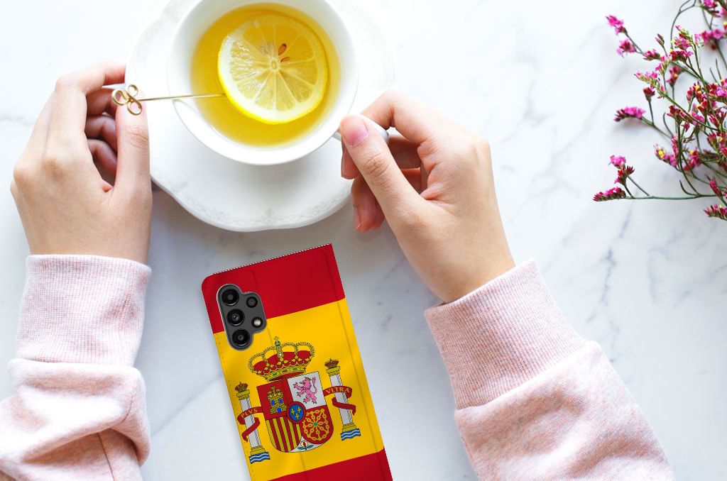 Vroeger werden vlaggen gebruikt om een boodschap over te brengen of een ridderorde aan te duiden. Tegenwoordig worden vlaggen gebruikt voor verschillende doeleinden. Een vlag kan worden gebruikt om te verwijzen naar een land, stad of beweging. Het staat symbool voor de nationaliteit van de mens. In onze collectie hebben wij alle Europese vlaggen opgenomen. De vlag wordt gedrukt op een Standcase voor de Samsung Galaxy A13 (4G) en heeft een vakje voor pasjes. Het fijne aan dit hoesje is dat je het horizontaal als standaard neer kunt zetten. Door de magneten aan de binnenkant wordt het hoesje afgesloten. Ook bieden wij de mogelijkheid om gratis je naam toe te voegen om het hoesje helemaal af te maken. Wil je meer vrijheid om het hoesje helemaal naar eigen wens te maken? Ga dan verder met ontwerpen in ons unieke ontwerpprogramma.