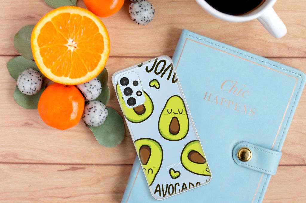 Avocado’s zijn niet alleen heel erg goed voor je, ze zijn ook super leuk op je telefoonhoesje. Dit unieke design vol schattige avocado’s zal jou en iedereen om je heen meteen opvrolijken. Nog een voordeel van dit design: deze avocado’s bederven nooit! Dit leuke Avocado Singing-ontwerp staat op een Telefoonhoesje met Naam voor de Samsung Galaxy A13 4G. Met deze vrolijke groene vruchten op je hoesje val jij zeker op. TPU is flexibel en onbreekbaar. Zo is je telefoon aan de achterkant en de randen heel goed beschermd. De case is aan de bovenkant bedrukt, de randen blijven transparant. Het TPU-hoesje is perfect te combineren met een screenprotector, zo zijn je telefoon en je beeldscherm perfect beschermd.
