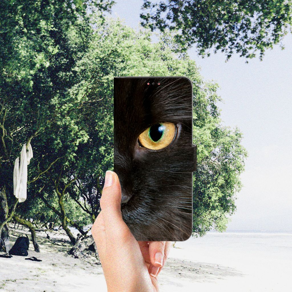 Samsung Galaxy A13 (4G) Telefoonhoesje sluit met magnetische sluitclip Design Zwarte Kat