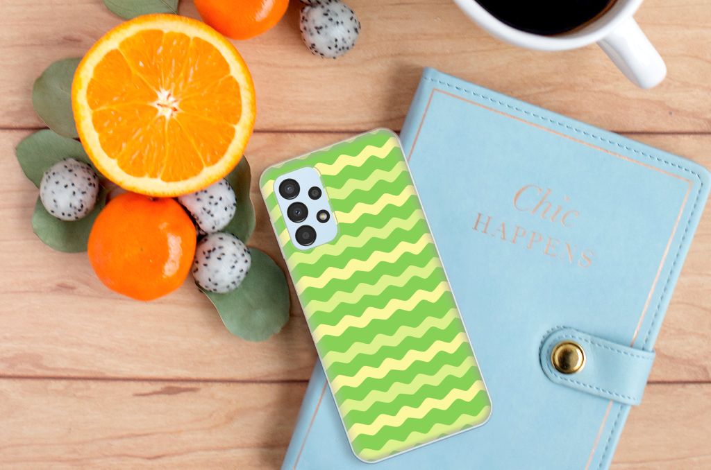 Dit groene design hoesje met groene golven is speciaal ontworpen voor jouw telefoon. We hebben een vleugje geel toegevoegd, zodat er sprake is van variatie. Dit Waves Green hoesje ziet er flitsend uit. Dat kan ook niet anders, als je weet dat we veel energie steken in het bedenken van originele designs. Een heel strak Samsung Galaxy A13 4G TPU bumper, met zeer veel opties. Past dit groene design hoesje met golven goed bij jou? Bestel het dan vandaag nog, tegen zeer lage kosten. Het design staat op een TPU case. Dit hoesje wordt alleen aan de bovenkant bedrukt en is zeer flexibel. De randen van het hoesje met groene golven blijven transparant en worden niet bedrukt. Met dit hoesje past jouw telefoon altijd in je broekzak.
