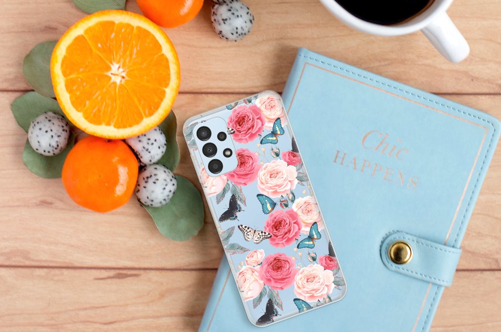 Ben je op zoek naar een uniek telefoonhoesje voor je Samsung Galaxy A13 4G? Dan ben je bij B2C Telecom aan het juiste adres! Speciaal voor jou hebben we dit prachtige Butterfly Roses design in onze collectie hoesjes opgenomen. Het design wordt bedrukt op een TPU Case en is gemaakt van flexibel rubber. Het design wordt alleen aan de bovenkant van het hoesje bedrukt en de randen blijven transparant. Aan de zijkanten zijn uitsparingen gemaakt waardoor je met gemak alle knoppen en poorten kunt bedienen. Wij adviseren om dit hoesje in combinatie met een screenprotector te gebruiken voor een langere levensduur van je telefoon. Wil je dit design hoesje nog iets extra's geven? Voeg dan gratis je naam of een quote toe! Is dit design hoesje toch niet helemaal wat je zocht? Ontwerp dan zelf een hoesje in ons ontwerpprogramma.
