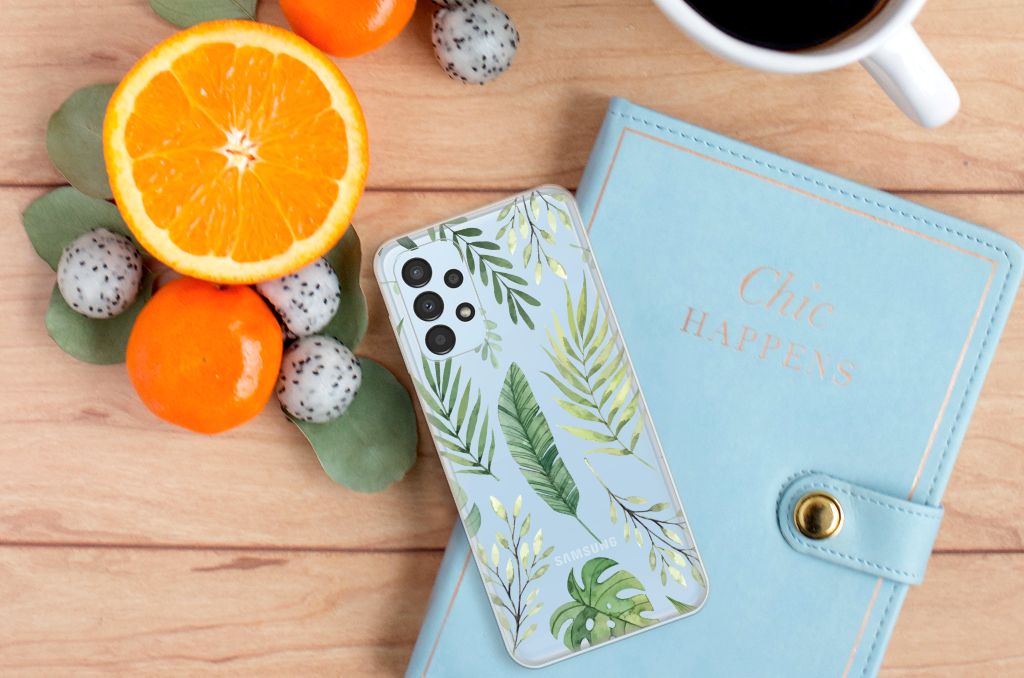 Je voelt je verbonden met de natuur als je kiest voor deze Samsung Galaxy A13 4G TPU Case met print Leaves. De print bestaat uit verschillende groene bladeren en dit zorgt voor een fraai decoratief geheel. Met dit patroon van groene bladeren creëer je een frisse uitstraling voor jouw smartphone. Jij doet er verstandig aan om je telefoon te beschermen met dit design hoesje met groene bladeren, die staan op een tpu case. Dit tpu hoesje kenmerkt zich onder meer door de opstaande randen aan de voorzijde, waardoor bij een val van de smartphone het scherm de grond niet raakt. Voel jij jezelf gezond met een beeld van groene bladeren, dan is deze tpu case met print een uitstekende optie. Het beschermt jouw telefoon aan de achterkant en zijkanten zeer goed. Het TPU is zeer flexibel en onbreekbaar. De zijkanten van de case blijven transparant. Kijk ook eens naar onze andere hoesjes met bladeren of misschien maak je zelf wel gewoon liefst je eigen hoesje met eigen foto’s van bladeren.