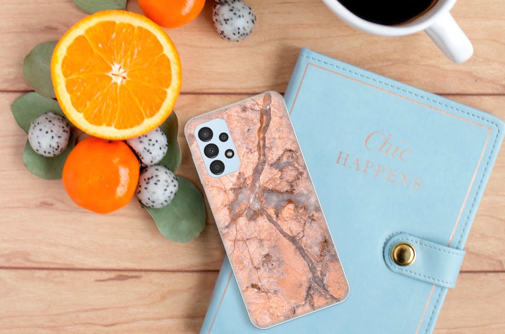 Dit design hoesje met Marmer Oranje is zeer geschikt voor jouw kostbare telefoon. Vanwege zijn prachtige lichtval en vastheid is marmer een zeer gewild bouwmateriaal. Wij kunnen inmiddels concluderen dat dit hoesje met oranje marmer ook zeer gewild is. Beloon jezelf en je telefoon met dit hele mooie Samsung Galaxy A13 4G TPU Siliconen Hoesje. Naast het oranje marmer zijn er de diverse marmersoorten in een ruim kleurenpallet te krijgen. Deze tpu case met marmer in oranje wordt aan de achterzijde bedrukt. De case beschikt over opstaande randen en is gemaakt van onbreekbaar materiaal. De randen van de case in oranje marmer blijven transparant. Wij hebben onze designer veel vrijheid gegeven met het ontwerpen dit mooie hoesje. Het resultaat zie je terug in deze tpu case met oranje marmer, dat een hele goede bescherming is voor jouw smartphone. Des te mooi dat wij voor variatie hebben gekozen door een hoesje met oranje marmer aan de bieden.