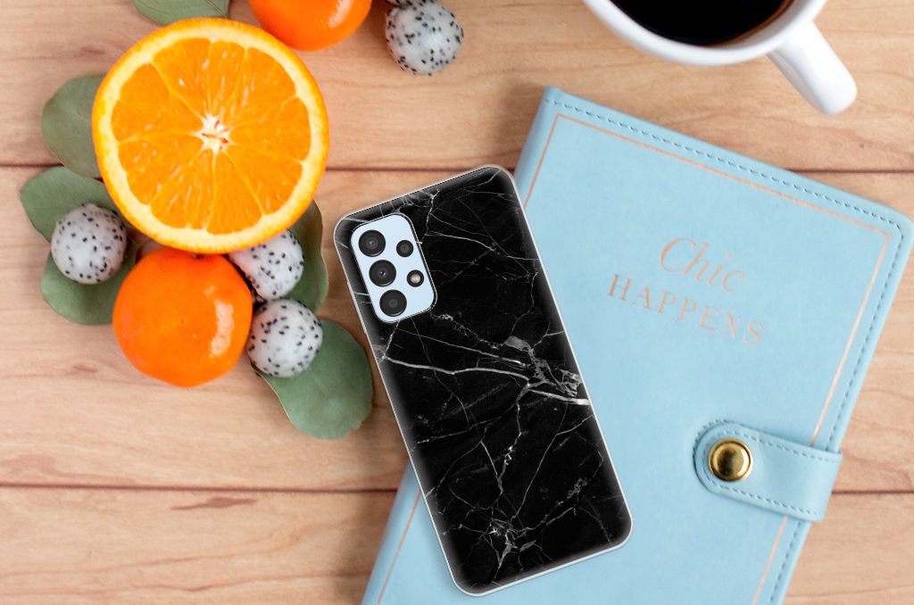 Dit design hoesje met Marmer Zwart is voor de artistieke personen onder ons. De Grieken en Romeinen wisten het materiaal al te waarderen door het in de bouw toe te passen. Naast het witte marmer met haar zacht grijze geaderde belijning zijn de diverse soorten in een gevarieerd kleurenpallet te krijgen. We hebben mooie kleuren op design hoesjes gezet, zoals in dit geval zwart marmer. Dit is een Samsung Galaxy A13 4G TPU Siliconen Hoesje met marmer in bruine kleur. Het marmer wordt bedrukt op de voorkant van een tpu case, die beschikt over opstaande randen aan de voorkant en heel goed combineert met een screenprotector van glas of van folie. De rijkdom aan kleuren en varianties in afwerking geeft ontwerpers de vrijheid om met marmer hele mooie architectonische projecten te realiseren. Wij hebben onze designer tevens veel vrijheid gegeven. Het resultaat zie je terug in deze tpu case met zwart marmer, die jouw smartphone goed beschermt. De zijkanten van de case worden niet bedrukt met het zwarte marmer.