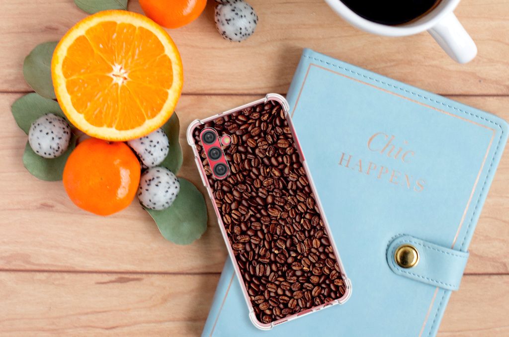 Ben je op zoek naar een uniek telefoonhoesje voor je Samsung Galaxy A13 5G | A04s? Dan ben je bij B2C Telecom aan het juiste adres! Speciaal voor jou hebben we dit prachtige Koffiebonen design in onze collectie hoesjes opgenomen. Het design wordt bedrukt op een Beschermhoes en is gemaakt van flexibel rubber. Het hoesje is perfect voor de actieve smartphonegebruiker door de opstaande randen/hoeken. Denk aan mensen die veel sporten, reizen of wandelen en net iets meer zekerheid willen als het op hun geliefde telefoon aankomt. Het design wordt alleen aan de bovenkant van het hoesje bedrukt en de randen blijven transparant. Aan de zijkanten zijn uitsparingen gemaakt waardoor je met gemak alle knoppen en poorten kunt bedienen. Wij adviseren om dit hoesje in combinatie met een screenprotector te gebruiken voor een langere levensduur van je telefoon. Wil je dit hoesje nog iets extra's geven? Voeg dan gratis je naam of een quote toe! Is dit design hoesje toch niet helemaal wat je zocht? Ontwerp dan zelf een hoesje in ons ontwerpprogramma.