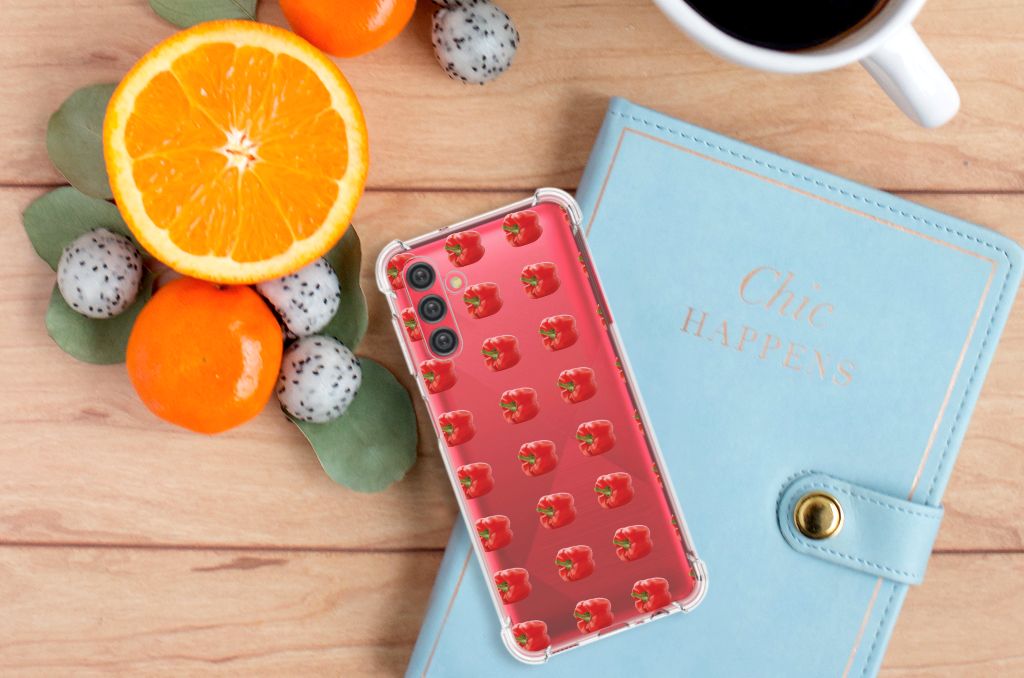 Ben je op zoek naar een uniek telefoonhoesje voor je Samsung Galaxy A13 5G | A04s? Dan ben je bij B2C Telecom aan het juiste adres! Speciaal voor jou hebben we dit prachtige Paprika Red design in onze collectie hoesjes opgenomen. Het design wordt bedrukt op een Beschermhoes en is gemaakt van flexibel rubber. Het hoesje is perfect voor de actieve smartphonegebruiker door de opstaande randen/hoeken. Denk aan mensen die veel sporten, reizen of wandelen en net iets meer zekerheid willen als het op hun geliefde telefoon aankomt. Het design wordt alleen aan de bovenkant van het hoesje bedrukt en de randen blijven transparant. Aan de zijkanten zijn uitsparingen gemaakt waardoor je met gemak alle knoppen en poorten kunt bedienen. Wij adviseren om dit hoesje in combinatie met een screenprotector te gebruiken voor een langere levensduur van je telefoon. Wil je dit hoesje nog iets extra's geven? Voeg dan gratis je naam of een quote toe! Is dit design hoesje toch niet helemaal wat je zocht? Ontwerp dan zelf een hoesje in ons ontwerpprogramma.