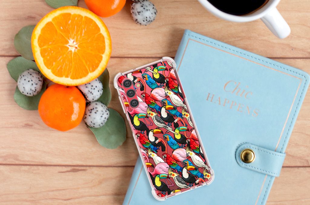 Ben je op zoek naar een uniek telefoonhoesje voor je Samsung Galaxy A13 5G | A04s? Dan ben je bij B2C Telecom aan het juiste adres! Speciaal voor jou hebben we dit prachtige Birds design in onze collectie hoesjes opgenomen. Het design wordt bedrukt op een Case Anti-shock en is gemaakt van flexibel rubber. Het hoesje is perfect voor de actieve smartphonegebruiker door de opstaande randen/hoeken. Denk aan mensen die veel sporten, reizen of wandelen en net iets meer zekerheid willen als het op hun geliefde telefoon aankomt. Het design wordt alleen aan de bovenkant van het hoesje bedrukt en de randen blijven transparant. Aan de zijkanten zijn uitsparingen gemaakt waardoor je met gemak alle knoppen en poorten kunt bedienen. Wij adviseren om dit hoesje in combinatie met een screenprotector te gebruiken voor een langere levensduur van je telefoon. Wil je dit hoesje nog iets extra's geven? Voeg dan gratis je naam of een quote toe! Is dit design hoesje toch niet helemaal wat je zocht? Ontwerp dan zelf een hoesje in ons ontwerpprogramma.