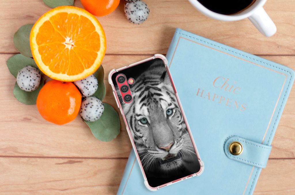 Ben je op zoek naar een uniek telefoonhoesje voor je Samsung Galaxy A13 5G | A04s? Dan ben je bij B2C Telecom aan het juiste adres! Speciaal voor jou hebben we dit prachtige Tijger design in onze collectie hoesjes opgenomen. Het design wordt bedrukt op een Case Anti-shock en is gemaakt van flexibel rubber. Het hoesje is perfect voor de actieve smartphonegebruiker door de opstaande randen/hoeken. Denk aan mensen die veel sporten, reizen of wandelen en net iets meer zekerheid willen als het op hun geliefde telefoon aankomt. Het design wordt alleen aan de bovenkant van het hoesje bedrukt en de randen blijven transparant. Aan de zijkanten zijn uitsparingen gemaakt waardoor je met gemak alle knoppen en poorten kunt bedienen. Wij adviseren om dit hoesje in combinatie met een screenprotector te gebruiken voor een langere levensduur van je telefoon. Wil je dit hoesje nog iets extra's geven? Voeg dan gratis je naam of een quote toe! Is dit design hoesje toch niet helemaal wat je zocht? Ontwerp dan zelf een hoesje in ons ontwerpprogramma.