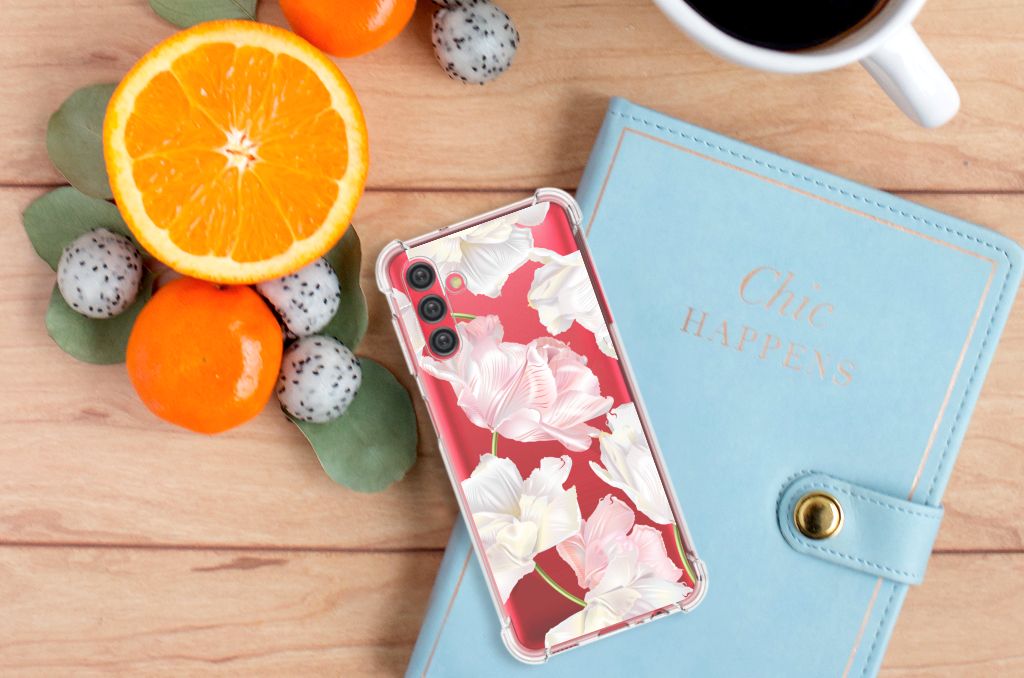 Ben je op zoek naar een uniek telefoonhoesje voor je Samsung Galaxy A13 5G | A04s? Dan ben je bij B2C Telecom aan het juiste adres! Speciaal voor jou hebben we dit prachtige Lovely Flowers design in onze collectie hoesjes opgenomen. Het design wordt bedrukt op een Case en is gemaakt van flexibel rubber. Het hoesje is perfect voor de actieve smartphonegebruiker door de opstaande randen/hoeken. Denk aan mensen die veel sporten, reizen of wandelen en net iets meer zekerheid willen als het op hun geliefde telefoon aankomt. Het design wordt alleen aan de bovenkant van het hoesje bedrukt en de randen blijven transparant. Aan de zijkanten zijn uitsparingen gemaakt waardoor je met gemak alle knoppen en poorten kunt bedienen. Wij adviseren om dit hoesje in combinatie met een screenprotector te gebruiken voor een langere levensduur van je telefoon. Wil je dit hoesje nog iets extra's geven? Voeg dan gratis je naam of een quote toe! Is dit design hoesje toch niet helemaal wat je zocht? Ontwerp dan zelf een hoesje in ons ontwerpprogramma.