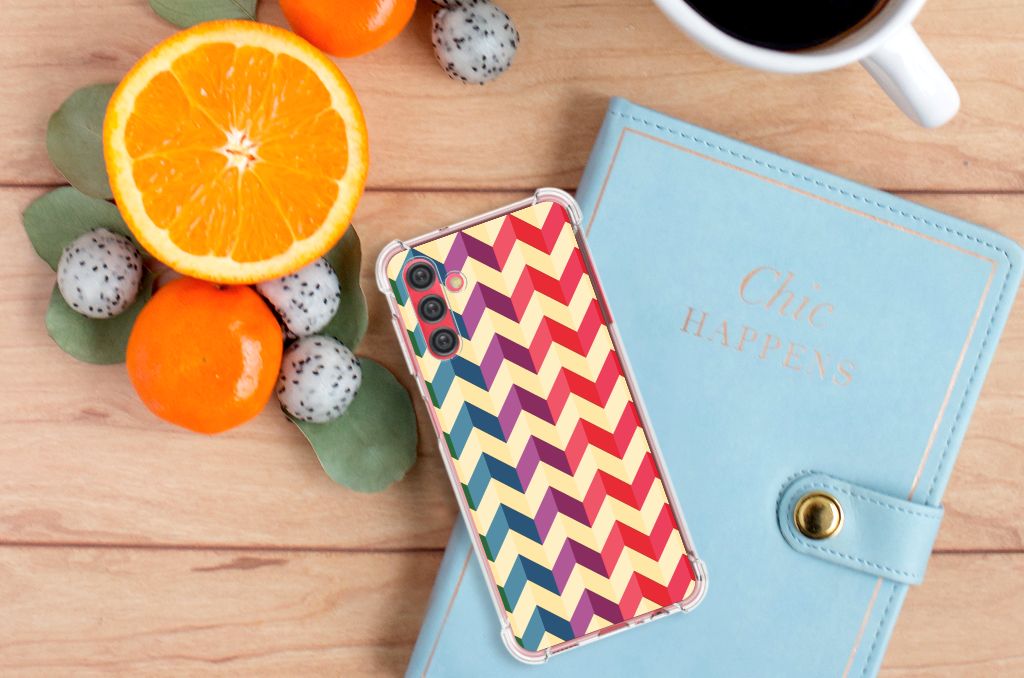 Ben je op zoek naar een uniek telefoonhoesje voor je Samsung Galaxy A13 5G | A04s? Dan ben je bij B2C Telecom aan het juiste adres! Speciaal voor jou hebben we dit prachtige Zigzag Color design in onze collectie hoesjes opgenomen. Het design wordt bedrukt op een Doorzichtige Silicone Hoesje en is gemaakt van flexibel rubber. Het hoesje is perfect voor de actieve smartphonegebruiker door de opstaande randen/hoeken. Denk aan mensen die veel sporten, reizen of wandelen en net iets meer zekerheid willen als het op hun geliefde telefoon aankomt. Het design wordt alleen aan de bovenkant van het hoesje bedrukt en de randen blijven transparant. Aan de zijkanten zijn uitsparingen gemaakt waardoor je met gemak alle knoppen en poorten kunt bedienen. Wij adviseren om dit hoesje in combinatie met een screenprotector te gebruiken voor een langere levensduur van je telefoon. Wil je dit hoesje nog iets extra's geven? Voeg dan gratis je naam of een quote toe! Is dit design hoesje toch niet helemaal wat je zocht? Ontwerp dan zelf een hoesje in ons ontwerpprogramma.
