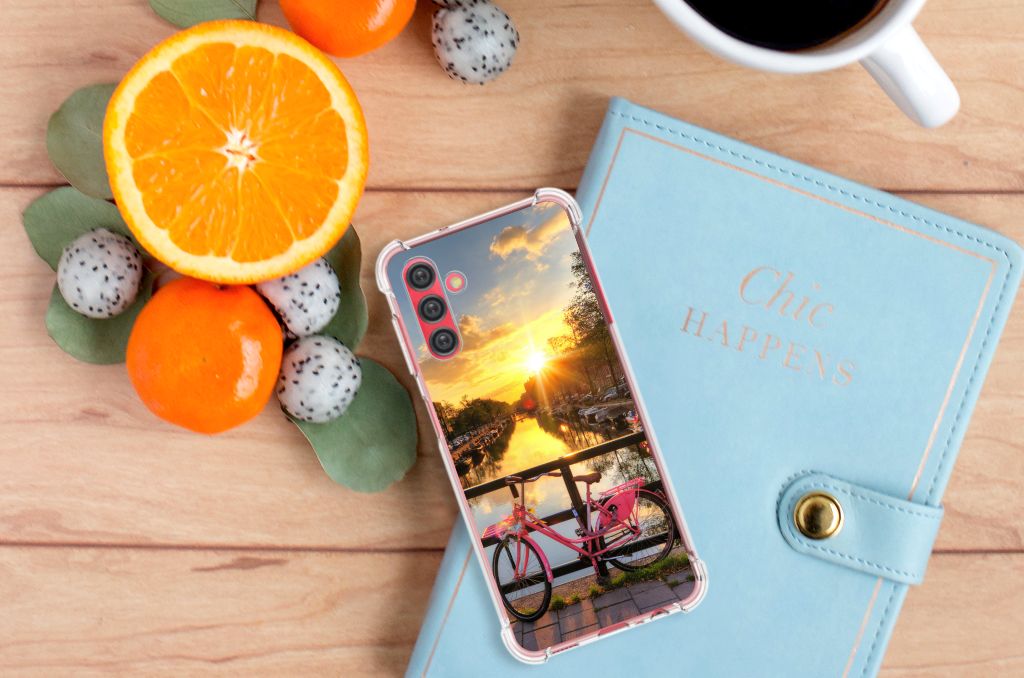 Ben je op zoek naar een uniek telefoonhoesje voor je Samsung Galaxy A13 5G | A04s? Dan ben je bij B2C Telecom aan het juiste adres! Speciaal voor jou hebben we dit prachtige Amsterdamse Grachten design in onze collectie hoesjes opgenomen. Het design wordt bedrukt op een Telefoonhoesje met valbescherming en is gemaakt van flexibel rubber. Het hoesje is perfect voor de actieve smartphonegebruiker door de opstaande randen/hoeken. Denk aan mensen die veel sporten, reizen of wandelen en net iets meer zekerheid willen als het op hun geliefde telefoon aankomt. Het design wordt alleen aan de bovenkant van het hoesje bedrukt en de randen blijven transparant. Aan de zijkanten zijn uitsparingen gemaakt waardoor je met gemak alle knoppen en poorten kunt bedienen. Wij adviseren om dit hoesje in combinatie met een screenprotector te gebruiken voor een langere levensduur van je telefoon. Wil je dit hoesje nog iets extra's geven? Voeg dan gratis je naam of een quote toe! Is dit design hoesje toch niet helemaal wat je zocht? Ontwerp dan zelf een hoesje in ons ontwerpprogramma.