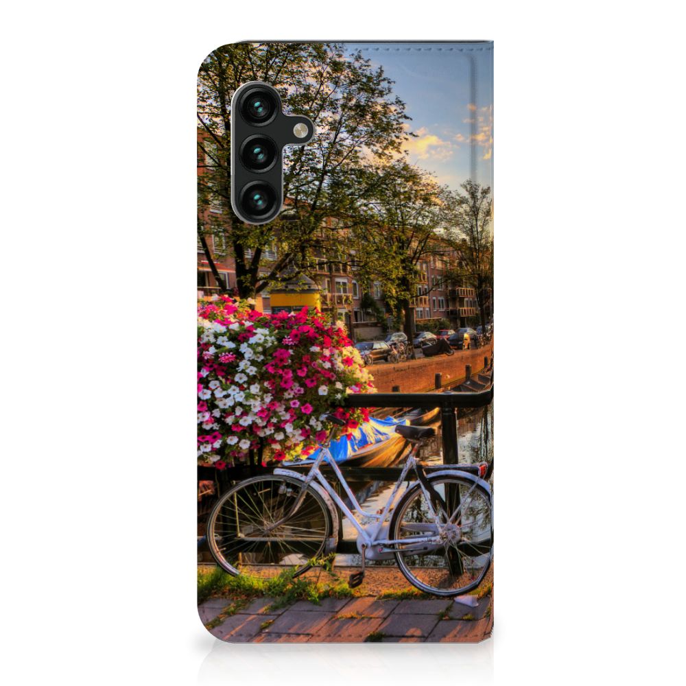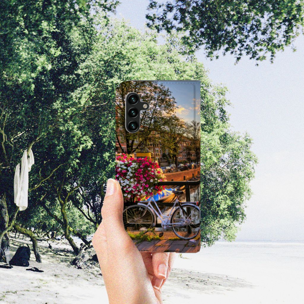 Amsterdam is meer dan ooit een toeristische trekpleister. Een bezoek aan de hoofdstad is niet compleet als er geen bezoek is gebracht aan de Amsterdamse Grachten. Ze zijn een symbool van de stad en hebben een enorme culturele en historische waarde. Daarom kunnen ze natuurlijk niet ontbreken in onze collectie design hoesjes. Dit schitterende design hoesje met Amsterdamse grachten tref je enkel en alleen aan bij B2C Telecom. De ondergaande zon en de fleurige en fraaie bloempakketten zorgen voor een prachtig totaalplaatje. Amsterdam is wereldberoemd om haar prachtige grachten uit de zeventiende eeuw. Dit smartphone hoesje is hier een eerbetoon aan. Het design staat op een stand case. Deze Samsung Galaxy A13 (5G) | Samsung Galaxy A04s Book Cover beschermt jouw telefoon aan alle kanten en beschikt over een 1 opbergvakje en een speciale standaard. Het hoesje wordt afgesloten met een magneet aan de binnenzijde. De houder aan de binnenzijde is van TPU. Alle zijden van de stand case worden bedrukt.