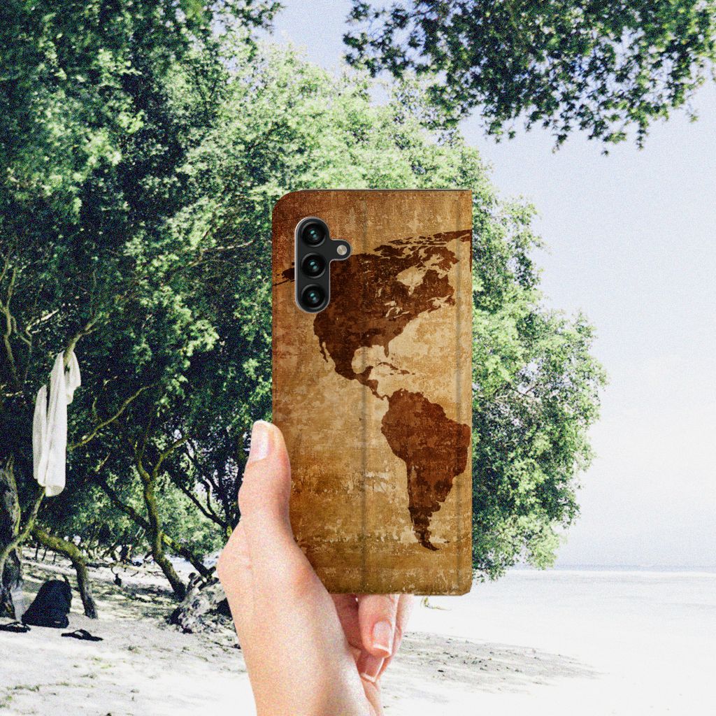 Als je een hoesje koopt met een wereldkaart, kun jij op veilige wijze met je smartphone rond de wereld reizen. Ga je zonder een boekhoesje met wereldkaart het buitenland verkennen, dan loop je veel te groot risico dat je stukken krijgt aan je smartphone. Met als gevolg dat je de belangrijke gebeurtenissen op je reis wellicht niet meer vast kunt leggen om door te sturen aan je vrienden. In het slechtste geval wordt jouw toestel zonder een smartphone hoesje met wereldkaart onbruikbaar. Wij kunnen de wereldkaart bedrukken op een stand case. Een Samsung Galaxy A13 (5G) | Samsung Galaxy A04s Book Cover beschermt jouw telefoon aan alle kanten en beschikt over een 1 opbergvakje en een speciale standaard. Het hoesje wordt afgesloten met een magneet aan de binnenzijde. De houder aan de binnenzijde is van TPU. Dit stand hoesje met wereldkaart is voor een zeer laag bedrag te bestellen.