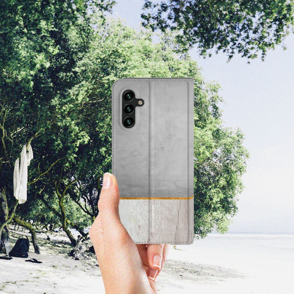Voor deze Samsung Galaxy A13 (5G) | Samsung Galaxy A04s Book Wallet Case met Wood Concrete design zou je zomaar een blokje omrijden. Ware het niet dat je dit bijzondere hoesje gewoon online kunt bestellen en zeer snel krijgt toegestuurd. Voor een klein bedrag heb je deze stand case met hout en beton in huis. Deze materialen worden bedrukt op alle zijden van het stand hoesje, dat beschikt over een vakje voor een pasje en een magnetische sluiting heeft aan de binnenzijde. Verder heeft de case met hout en beton een houder van TPU. Dit stand hoesje met hout en beton heeft veel schitterende eigenschappen en is de ideale bescherming voor jouw smartphone. Je kunt ook kiezen voor andere soorten hoesjes zoals TPU cases en hard cases. Op al dit soort cases kun je ook je eigen unieke ontwerp zetten, met eigen foto´s en teksten.