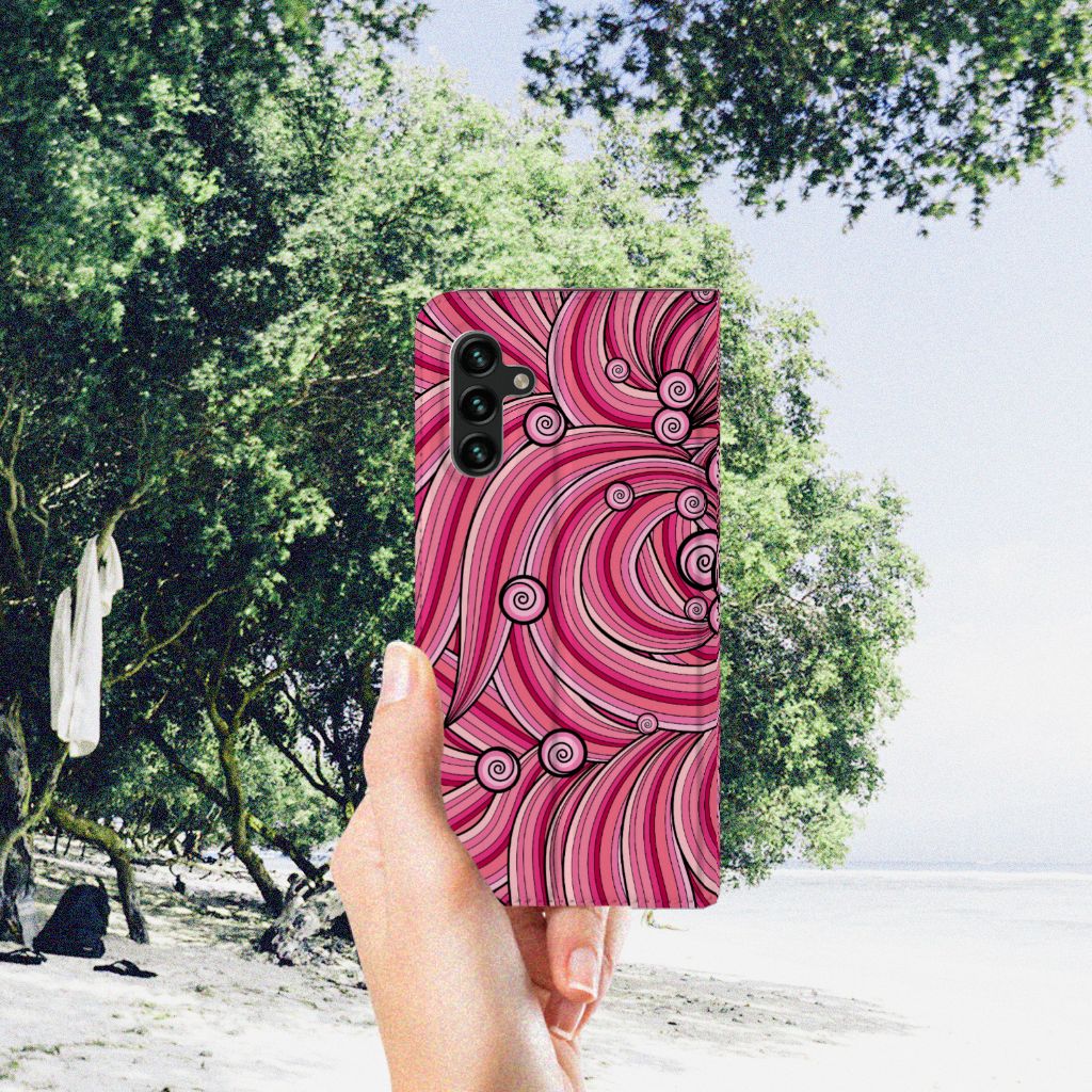 Deze mooie Samsung Galaxy A13 (5G) | Samsung Galaxy A04s Bookcase met Swirl Pink is een geweldige en duurzame bescherming voor jouw smartphone. De kleuren zijn zeer subtiel op het hoesje gezet en worden op alle zijden van de case bedrukt. Dit drukwerk doen we in eigen beheer, zodat het roze en het zwart ook uitstekend tot zijn recht komen op de stand case. Een stand hoesje is perfect op maat gemaakt en heeft een vakje voor een pasje. Daarnaast is de magneet aan de binnenkant zeer veilig. De case sluit perfect af. De houder aan de binnenzijde is van tpu. Ook de standaard aan de buitenzijde wordt in roze met zwart bedrukt. Nergens tref je een hoesje met deze kleuren aan dat zo goed past bij jouw smartphone.