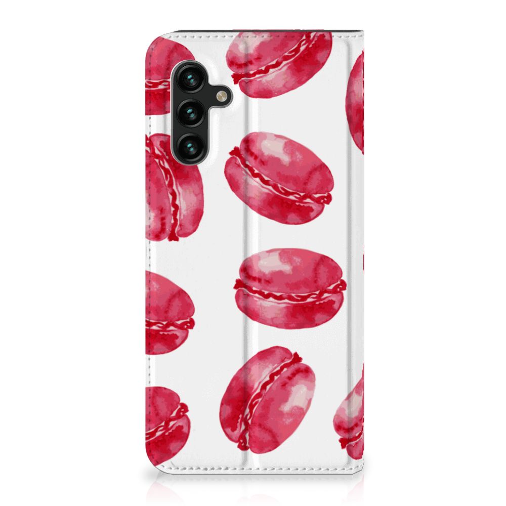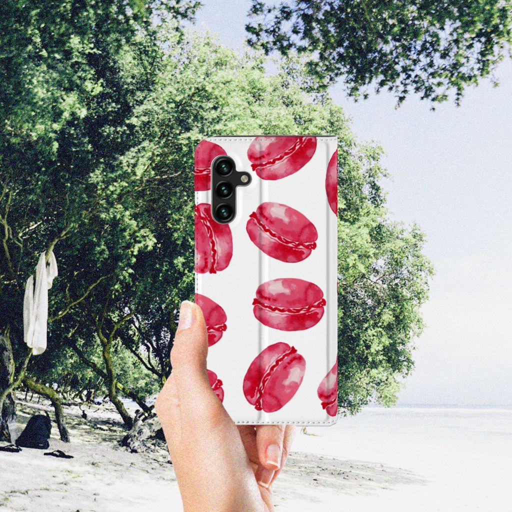Dit stand hoesje met Pink Macarons is een zeer opvallende bescherming voor jouw smartphone. Macarons zijn Franse koekjes: kleine, rond en luchtig. Ze worden in veel verschillende smaken gemaakt, herkenbaar aan de verschillende kleuren zoals chocolade (donkerbruin), mokka (middenbruin), kersen (rood), pistache (groen), aardbei (roze), framboos (karmijn). Deze kleuren kun je net allemaal zien op dit fraaie design hoesje met roze macarons. Heb je altijd al een Samsung Galaxy A13 (5G) | Samsung Galaxy A04s Flip Style Cover willen hebben met roze macarons? Grijp dan nu je kans. Deze case heeft zeer veel goede eigenschappen, zoals 1 opbergvakje en een magnetische sluiting aan de binnenkant. Dit design hoesje met roze macarons wordt aan alle zijden bedrukt. De houder aan de binnenkant van het hoesje is van TPU. De case heeft ook een handige standaard.