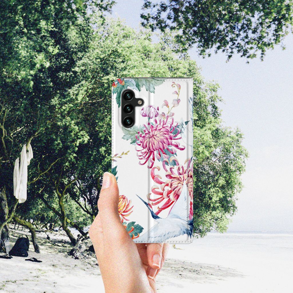 Verspreid over de hele wereld leven 19 soorten ooievaars. De spanwijdte – dat is de afstand van vleugeltip tot vleugeltip – van een volwassen ooievaar kan 2.50 meter bedragen. De gebieden waarin de ooievaar broedt, liggen in heel Europa, het Midden-Oosten, West- en Centraal-Azië en Noordwest-Afrika. Het ideale leefgebied van de ooievaar is een half open tot open landschap met veel afwisseling in grondgebruik en begroeiing. De begroeiing op dit design hoesje, in allerlei verschillende kleuren, zal niet alleen voor de ooievaars fraai zijn. Jij zult er zelf ook heel vrolijk van worden. Het in het oog springende design staat op een Hoesje maken. Deze case beschermt jouw Samsung Galaxy A13 (5G) | Samsung Galaxy A04s aan alle kanten en beschikt over een 1 opbergvakje en een speciale standaard. Het hoesje wordt afgesloten met een magneet aan de binnenzijde. De houder aan de binnenzijde is van TPU. Alle zijden van de stand case worden bedrukt.