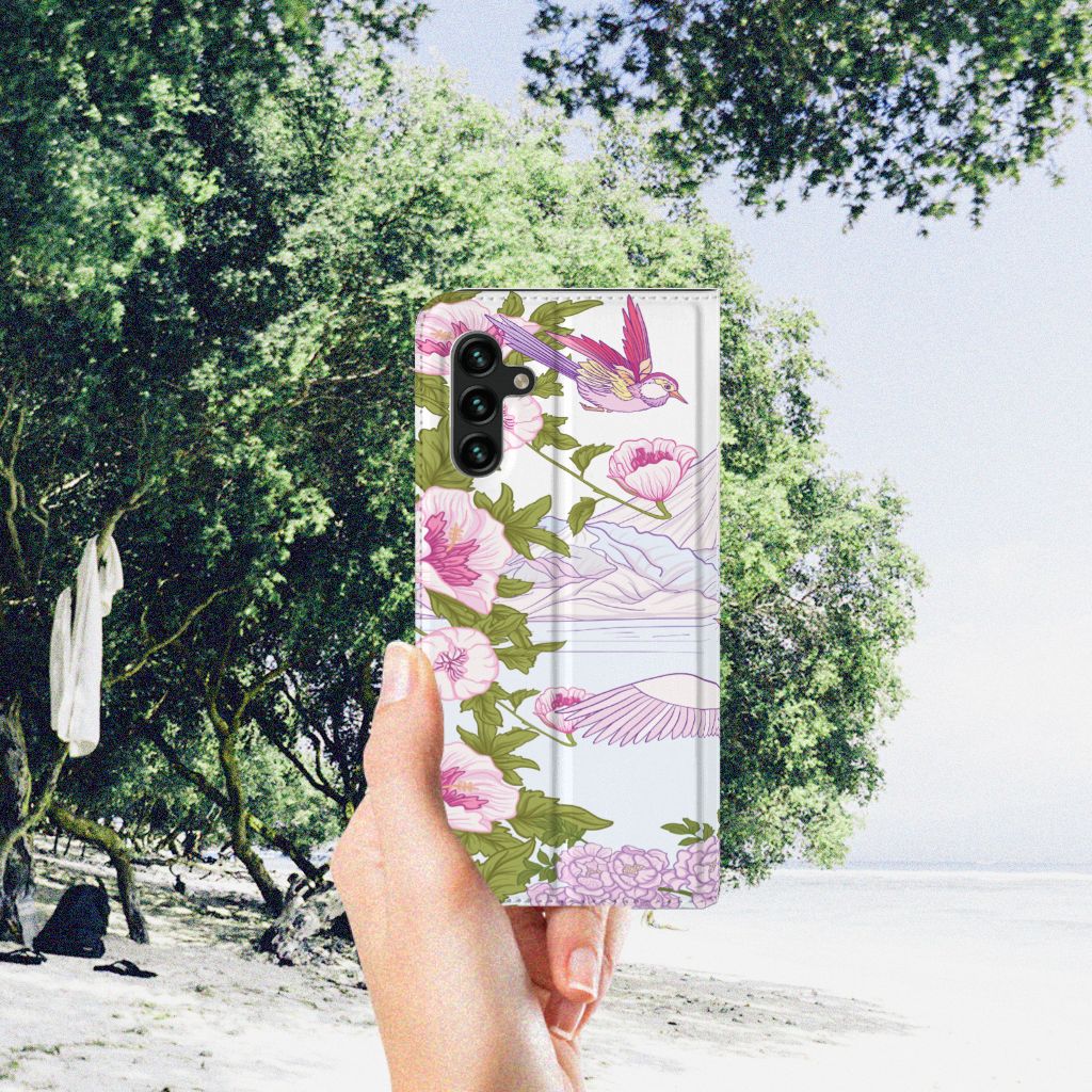 Met deze kleurrijke Samsung Galaxy A13 (5G) | Samsung Galaxy A04s Hoesje maken met verschillende paarse vogels blijft jouw toestel in nieuwstaat. De paarse vogels maken het stand hoesje zeer bijzonder. Het hoesje met design Bird Standing in roze en paarse kleuren is een zeer opvallende bescherming voor je telefoon. Het kleurrijke stand hoesje met opvallende vogels beschermt jouw telefoon aan alle zijden en beschikt over een opbergvakje voor een pasje of briefgeld. De roze met paarse case sluit perfect af met de magneet aan de binnenzijde. De houder aan de binnenzijde van het schitterende stand hoesje is van TPU. Dit is ook nog eens zeer flexibel materiaal. Het pu leer aan de buitenkant oogt zeer chique. Kijk voor andere dieren op een design hoesje binnen deze fraaie collectie. Ook kun je zelf een hoesje ontwerpen met je favoriete dier.