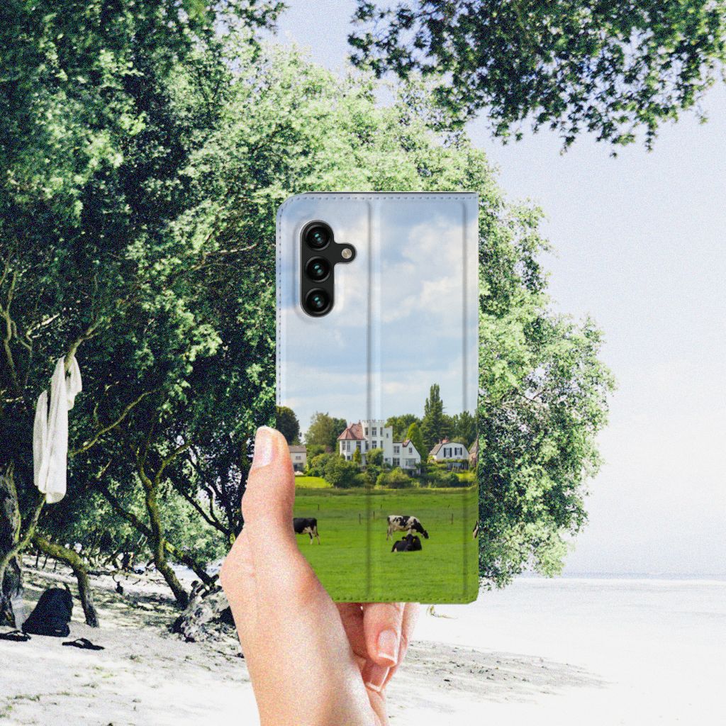 Een koe moet goed verzorgd worden. Door ze buiten te laten lopen en grazen, hebben ze minder kans om ziek te worden. De koe is een kuddedier en graast het liefst met soortgenoten. Dit levert ook mooie plaatjes op, zoals je kunt zien op dit design hoesje met Koeien. Dit smartphone hoesje met koeien ziet er super strak uit en is voorzien van verschillende uitsparingen. Een Samsung Galaxy A13 (5G) | Samsung Galaxy A04s Hoesje maken met magneet en grazende koeien beschermt jouw smartphone overal. Alle kanten zijn bedrukt. Koeien hebben graasperioden van ongeveer een uur. Deze worden afgewisseld worden door rust- en herkauwperioden. Ze herkauwen het liefst liggend, behalve wanneer het regent. Zo goed als grazen voelt voor koeien, zo duurzaam zal jouw smartphone worden met dit design hoesje. Het TPU aan de binnenkant zeer flexibel. Het PU-leer aan de buitenkant oogt zeer flexibel. De stand case heeft 1 opbergvakje en een speciale standaard.