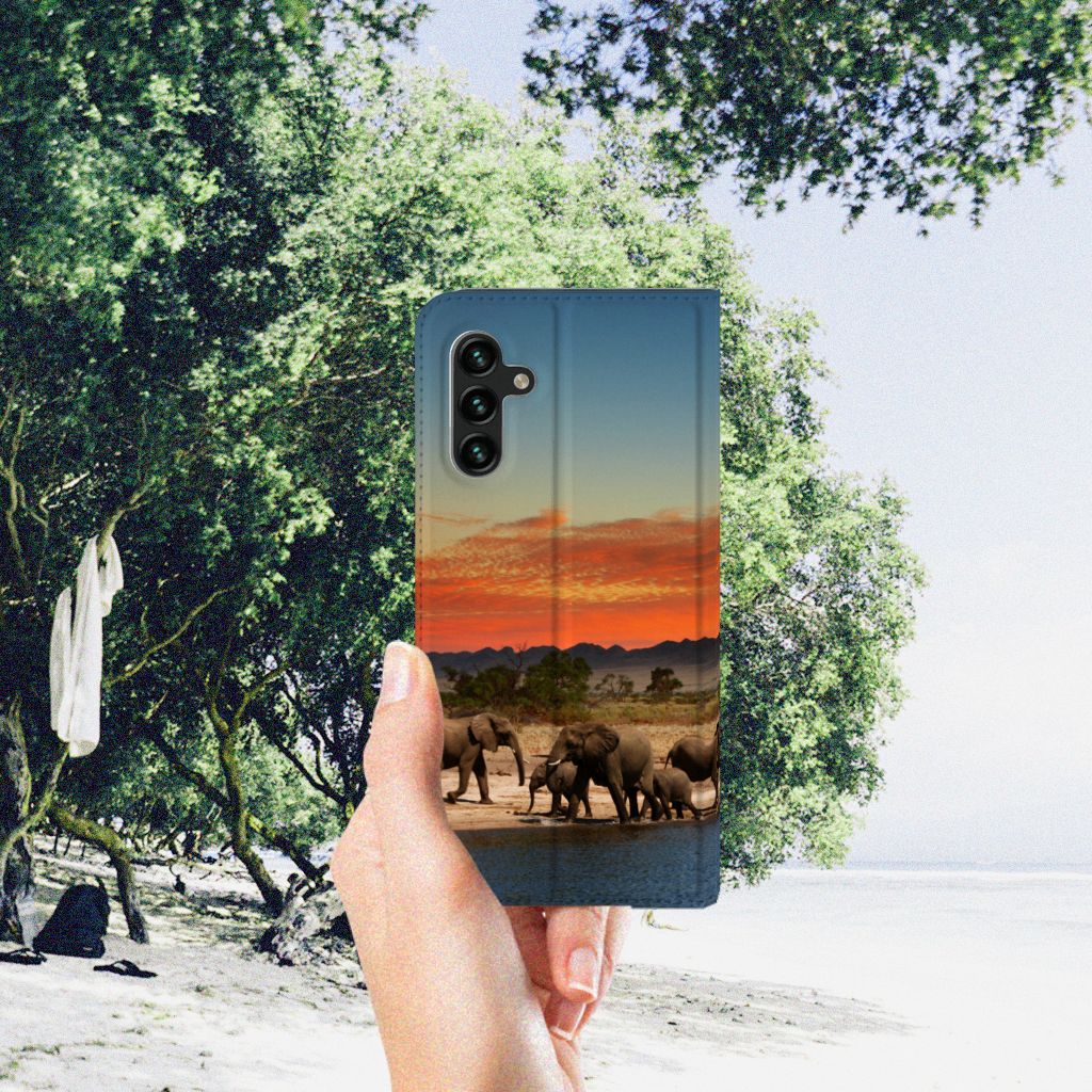 Dit hoesje is zo sterk als een olifant. Dat is goed nieuws, want jouw telefoon heeft een zeer goede bescherming nodig. Dat krijg je met dit design hoesje met print van Olifanten. De Afrikaanse olifant, het allergrootste landdier ter wereld, heeft waarschijnlijk het meest te lijden gehad van stroperij om het ivoor. Deze dieren verdienen dus een goede bescherming, net als jouw smartphone. Met een Samsung Galaxy A13 (5G) | Samsung Galaxy A04s Hoesje maken met olifant erop krijg je dit zeker voor elkaar. De stand case beschermt alle zijden van je telefoon en heeft aan de binnenzijde een vakje waarin je een pasje kunt opbergen. De sterke olifant komt zeer goed tot zijn recht op deze case, die aan de binnenkant een houder heeft van tpu. Ook de magneet aan de binnenkant is zeer handig. Alle zijden van de case worden bedrukt met olifanten.