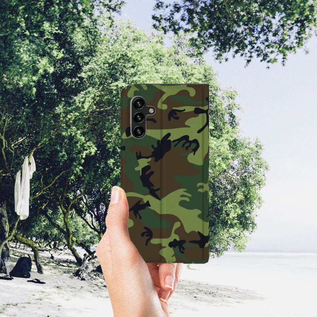 Voel je jezelf verbonden met het leger, dan zal deze Samsung Galaxy A13 (5G) | Samsung Galaxy A04s Hoesje met Magneet je zeker bevallen. Het design hoesje beschikt namelijk over donkere camouflage kleuren. Deze worden vaak gebruikt door mensen die zich graag willen mengen in hun omgeving. Dit Army Dark hoesje is er dus voornamelijk in kleuren die in de natuur voorkomen, zodat je één wordt met je achtergrond. Beschermt de krijgsmacht volk en vaderland, dit hoesje in donkere camouflage kleuren zal jouw telefoon onder alle omstandigheden schadevrij houden. Met een hoesje in dit soort kleuren zal je niet zo snel opvallen. Wel is het echter een hele stoere case. Het design staat op een stand case. Deze case beschermt jouw telefoon aan alle kanten en beschikt over een 1 opbergvakje en een speciale standaard. Het hoesje wordt afgesloten met een magneet aan de binnenzijde. De houder aan de binnenzijde is van TPU. Alle zijden van de case worden bedrukt met donkere camouflage kleuren.