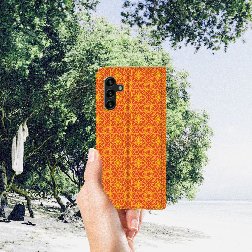 Batikken is een super oude kunstvorm. Met deze methode wordt een geweven stof met verf gedecoreerd. Er zijn stoffen gevonden in het Midden-Oosten en Azië van meer dan tweeduizend jaar oud. Wie had kunnen bedenken dat we zo’n mooie batik-print duizenden jaren later zelfs op telefoonhoesjes zouden terugvinden? Dit Hoesje met Magneet in voor je Samsung Galaxy A13 (5G) | Samsung Galaxy A04s heeft een mooie oranje kleur en een prachtig symmetrisch patroon. Vanwege de felle kleurtjes is dit hoesje onwijs vrolijk. Het hoesje heeft binnenin één vakje voor een pasje en een magnetische sluiting aan de binnenkant. Verder heeft de batik orange-hoes een houder van TPU. Het leuke van een standcase is dat je hem eenvoudig neer kunt zetten. Zo heb je je handen vrij als je bijvoorbeeld een video wilt kijken op je smartphone.