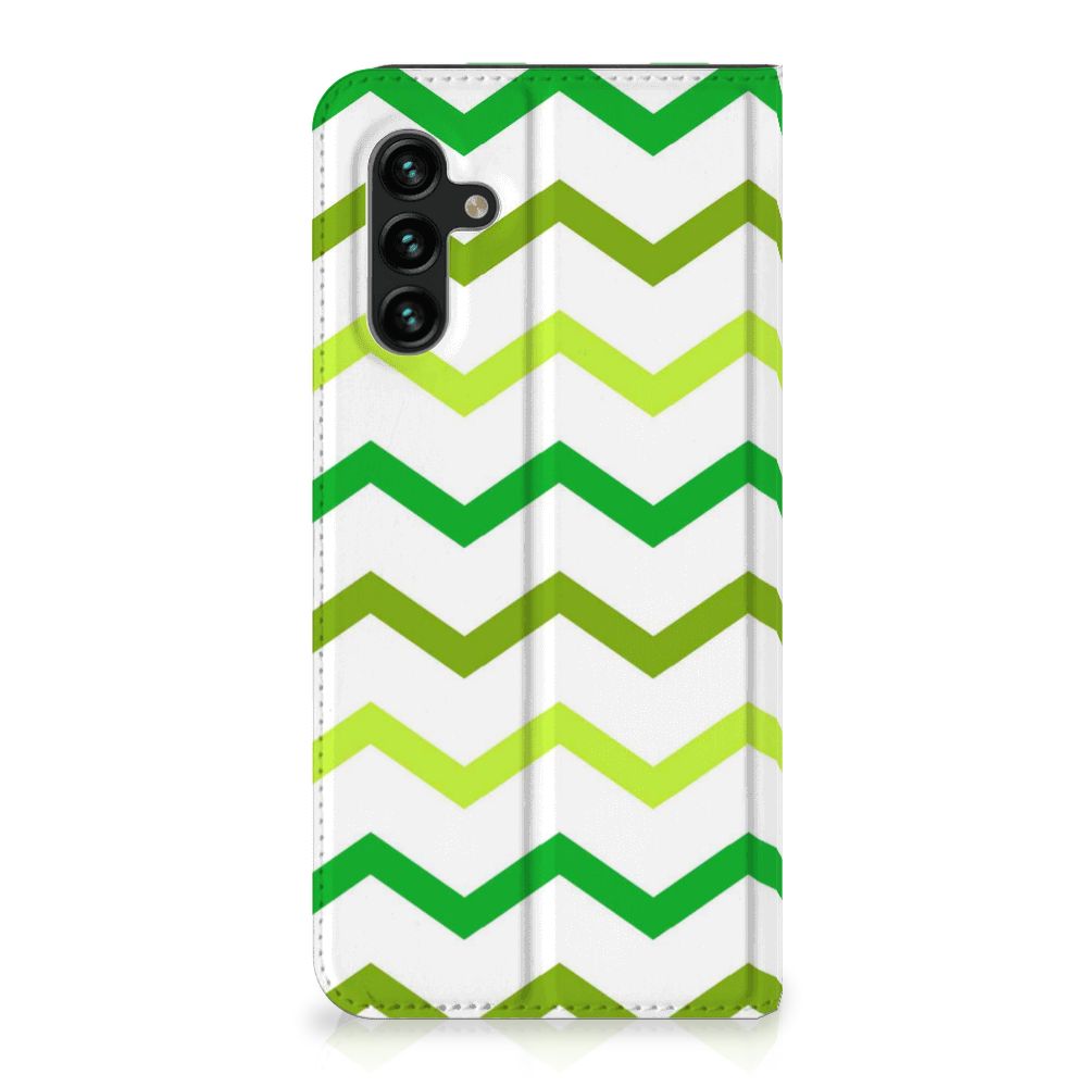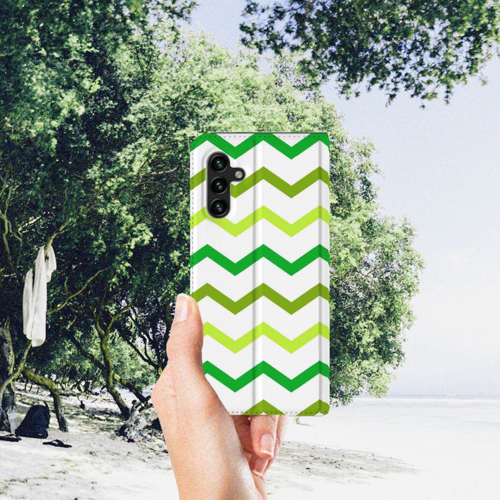 Dit zigzag groen design hoesje is speciaal ontworpen voor jouw telefoon. We hebben bewust verschillende stijlen groen gebruikt, zodat er voldoende sprake is van variatie. Dit groene hoesje ziet er super strak uit. Dat kan ook niet anders, als je weet dat onze designer zijn creativiteit heeft gebruikt. Hij schudt voortdurend nieuwe designs uit zijn mouw en dit zigzag groene hoesje is een van zijn fraaiste creaties. Een heel tof Samsung Galaxy A13 (5G) | Samsung Galaxy A04s Hoesje met Magneet, al zeggen we het zelf. Valt dit Zigzag Groen design hoesje goed bij jou? Bestel het dan vandaag nog en je hebt het morgen in huis. Het design staat op een stand case. Deze case beschermt jouw telefoon aan alle kanten en beschikt over een 1 opbergvakje en een speciale standaard. Het hoesje wordt afgesloten met een magneet aan de binnenzijde. De houder aan de binnenzijde is van TPU. Alle zijden van de stand case worden bedrukt.