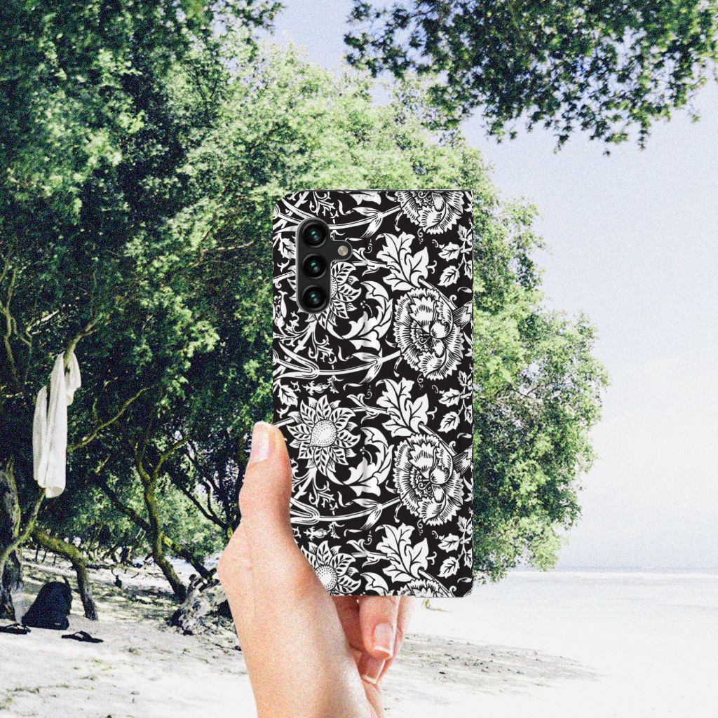 Bloemen raken nooit uit de mode! Een mooie bloemenprint op je telefoonhoesje dus ook niet. Dit ontwerp met mooie, enigszins abstracte bloemen is perfect voor de liefhebber van bloemen die geen felgekleurd hoesje wil. Vanwege de zwarte achtergrond en de witte bloemen heb je toch een opvallend en uniek design in handen. Dit black flowers-ontwerp staat op een Smart Cover voor je Samsung Galaxy A13 (5G) | Samsung Galaxy A04s. Dit populaire smartphonehoesje met het beton-design heeft één vakje voor een pasje of briefgeld en is aan alle zijden bedrukt. Met de standcase zet je je telefoon gemakkelijk neer, zodat je je handen vrij hebt als je bijvoorbeeld een video wilt kijken. De binnenkant van de standcase is van grijs PU-leer. Dat is fijn, omdat je daardoor niet snel vlekken ziet op je hoesje.