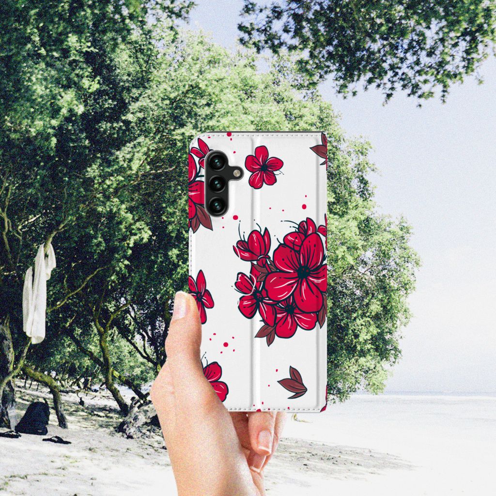 Wie denkt aan Japan, denkt al gauw aan die prachtige kersenbomen die in het begin van de lente in bloei staan en het land hullen in een prachtige zee van bloesem. Wie elke dag wil genieten van deze mooie kersenbloesem, kan natuurlijk ook kiezen voor dit mooie telefoonhoesje! Dankzij de witte achtergrond knallen de rode bloemetjes er mooi uit. Dit blossom red-design staat op een Smart Cover voor de Samsung Galaxy A13 (5G) | Samsung Galaxy A04s. Dit populaire smartphonehoesje met het heeft één vakje voor een pasje of briefgeld en is aan alle zijden bedrukt. Met de standcase zet je je telefoon gemakkelijk neer, zodat je je handen vrij hebt als je bijvoorbeeld een video wilt kijken. De binnenkant van de standcase is van grijs PU-leer. Dat is fijn, omdat je daardoor niet snel vlekken ziet op je hoesje.