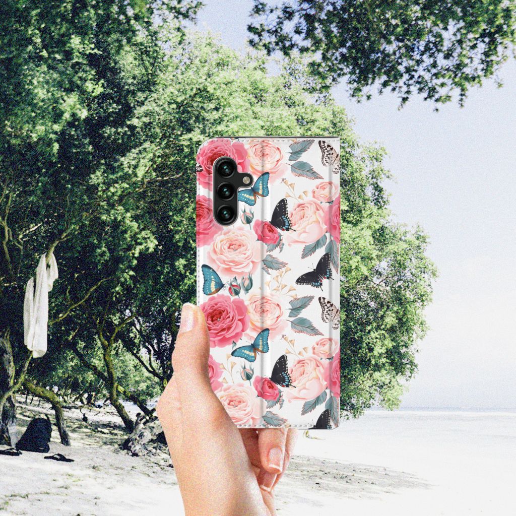 Ben je op zoek naar een uniek telefoonhoesje voor je Samsung Galaxy A13 (5G) | Samsung Galaxy A04s? Dan ben je bij B2C Telecom aan het juiste adres! Speciaal voor jou hebben we dit prachtige Butterfly Roses design in onze collectie hoesjes opgenomen. Het design wordt bedrukt op een Smart Cover en heeft een vakje aan de binnenkant voor een pasje. Het fijne aan dit hoesje is dat je het als standaard neer kunt zetten. Hierdoor geniet je nog meer als je een filmpje aan het kijken bent op je telefoon. Het hoesje wordt afgesloten door magneten aan de binnenkant. Wil je dit design hoesje nog iets extra's geven? Voeg dan gratis je naam of een quote toe! Is dit design hoesje toch niet helemaal wat je zocht? Ontwerp dan zelf een hoesje in ons ontwerpprogramma.