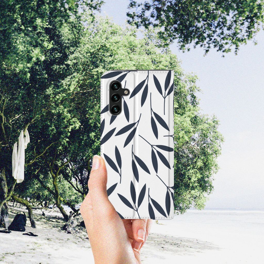 Je bent een klein beetje verbonden met de natuur als je kiest voor dit Samsung Galaxy A13 (5G) | Samsung Galaxy A04s Smart Cover met print van donkergrijze bladeren. De print bestaat uit verschillende donkergrijze bladeren en dit zorgt voor een fraai decoratief geheel. Met dit patroon van donkergrijze bladeren op een lichtgrijze met witte achtergrond creëer je een opvallende uitstraling voor jouw smartphone. Jij doet er verstandig aan om je telefoon te beschermen met dit design hoesje met donkergrijze bladeren, die staan op een stand case. Dit hoesje heeft onder meer het handige vakje aan de binnenzijde en de magnetische sluiting aan de binnenzijde. Het beschermt jouw telefoon aan alle zijden. Het TPU aan de binnenzijde is zeer flexibel. We hebben meerdere hoesjes met bladeren. Je kunt ook je eigen hoesje met eigen foto’s van bladeren ontwerpen.