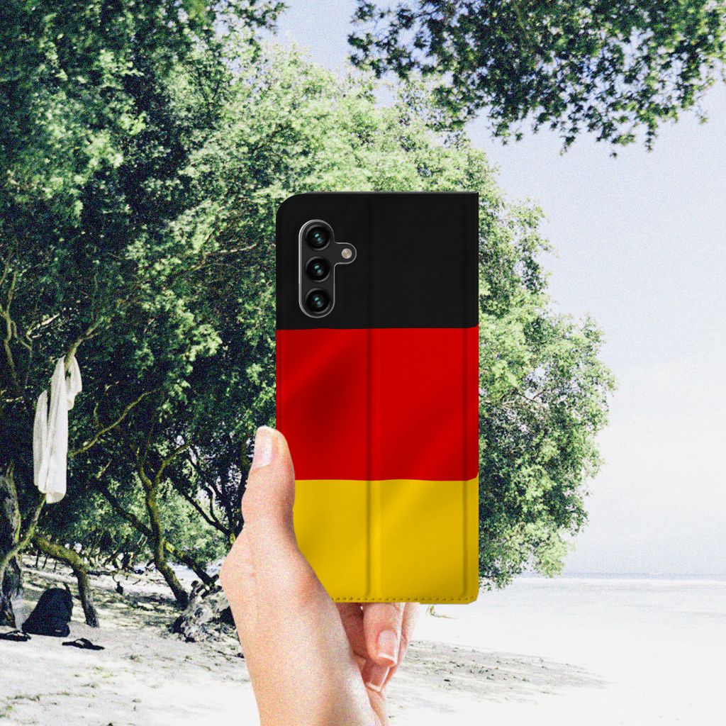 Vroeger werden vlaggen gebruikt om een boodschap over te brengen of een ridderorde aan te duiden. Tegenwoordig worden vlaggen gebruikt voor verschillende doeleinden. Een vlag kan worden gebruikt om te verwijzen naar een land, stad of beweging. Het staat symbool voor de nationaliteit van de mens. In onze collectie hebben wij alle Europese vlaggen opgenomen. De vlag wordt gedrukt op een Standcase voor de Samsung Galaxy A13 (5G) | Samsung Galaxy A04s en heeft een vakje voor pasjes. Het fijne aan dit hoesje is dat je het horizontaal als standaard neer kunt zetten. Door de magneten aan de binnenkant wordt het hoesje afgesloten. Ook bieden wij de mogelijkheid om gratis je naam toe te voegen om het hoesje helemaal af te maken. Wil je meer vrijheid om het hoesje helemaal naar eigen wens te maken? Ga dan verder met ontwerpen in ons unieke ontwerpprogramma.