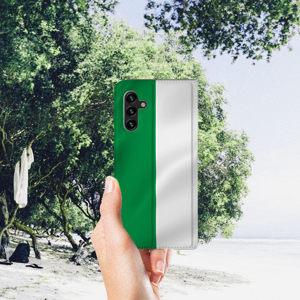 Vroeger werden vlaggen gebruikt om een boodschap over te brengen of een ridderorde aan te duiden. Tegenwoordig worden vlaggen gebruikt voor verschillende doeleinden. Een vlag kan worden gebruikt om te verwijzen naar een land, stad of beweging. Het staat symbool voor de nationaliteit van de mens. In onze collectie hebben wij alle Europese vlaggen opgenomen. De vlag wordt gedrukt op een Standcase voor de Samsung Galaxy A13 (5G) | Samsung Galaxy A04s en heeft een vakje voor pasjes. Het fijne aan dit hoesje is dat je het horizontaal als standaard neer kunt zetten. Door de magneten aan de binnenkant wordt het hoesje afgesloten. Ook bieden wij de mogelijkheid om gratis je naam toe te voegen om het hoesje helemaal af te maken. Wil je meer vrijheid om het hoesje helemaal naar eigen wens te maken? Ga dan verder met ontwerpen in ons unieke ontwerpprogramma.