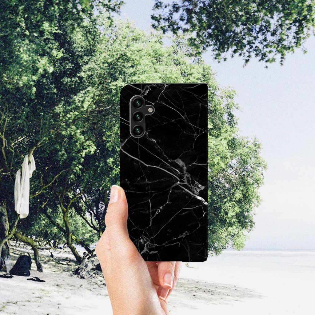Dit design hoesje met Marmer Zwart is voor de artistieke personen onder ons. De Grieken en Romeinen wisten het materiaal al te waarderen door het in de bouw toe te passen. Naast het witte marmer met haar zacht grijze geaderde belijning zijn de diverse soorten in een gevarieerd kleurenpallet te krijgen. We hebben mooie kleuren op design hoesjes gezet, zoals in dit geval zwart marmer. Dit is een Samsung Galaxy A13 (5G) | Samsung Galaxy A04s Standcase met marmer in zwarte kleur. Het marmer wordt bedrukt op alle zijden van een stand case, die beschikt over 1 vakje voor een pasje en een magnetische sluiting aan de binnenzijde. Verder heeft de hoes een houder van TPU. De rijkdom aan kleuren en varianties in afwerking geeft ontwerpers de vrijheid om met marmer hele mooie architectonische projecten te realiseren. Wij hebben onze ontwerper tevens veel vrijheid gegeven. Het resultaat zie je terug in deze stand case met zwart marmer, dat de ideale bescherming voor jouw smartphone biedt.